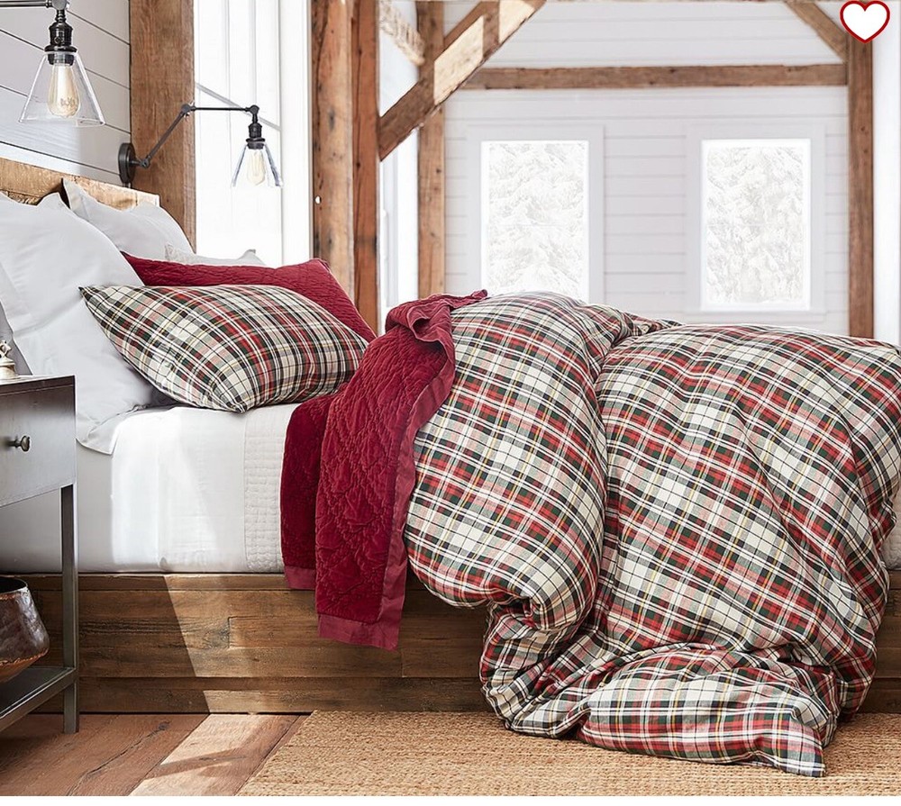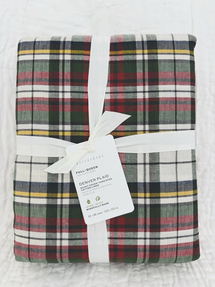 Pottery Barn Denver Plaid Duvet Cover Full/Queen Made of 53% cotton and 47% linen Yarn dyed for rich and lasting color that wears well over time Duvet cover features interior ties and hidden button cl...