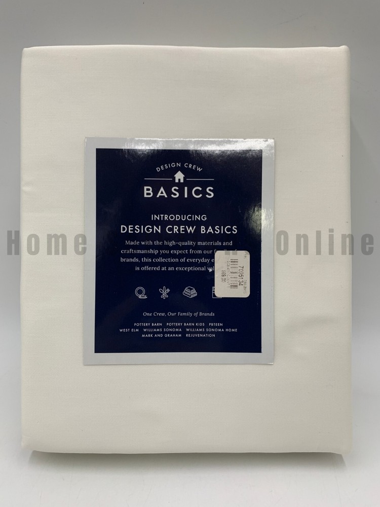 Pottery Barn Design Crew Basics 400 Thread Count Percale Duvet Item is brand new Auction includes: 1 duvet cover DETAILS: Made of 100% organic cotton percale; a percale weave is noticeably denser and wears well over time. 400-thread count. Duvet and sham reverses to the same as front. Duvet features a hidden button closure with inner ties that keep insert in place; sham features an envelope closure. Twin-sized duvet cover fits both standard twin and twin XL dorm mattresses. Duvet, sham, and insert sold separately. Imported. CARE: Machine wash. DIMENSIONS: Duvet Cover Twin/ Twin XL : 68" wide x 86" long Full/Queen: 88" wide x 90" long King/Cal. King: 92" long x 108" wide CARE AND MAINTENANCE: Wash bedding before first use. Machine wash in warm water; gentle cycle. Use only non-chlorine bleach, if needed. Tumble dry on low heat. Warm iron as needed.