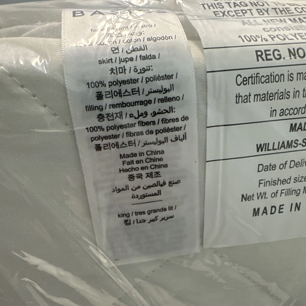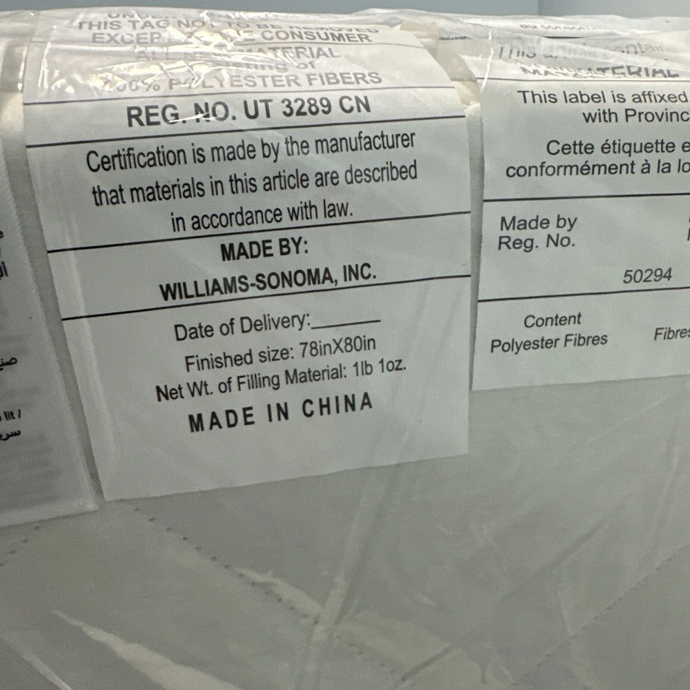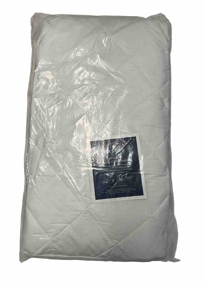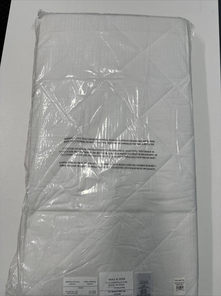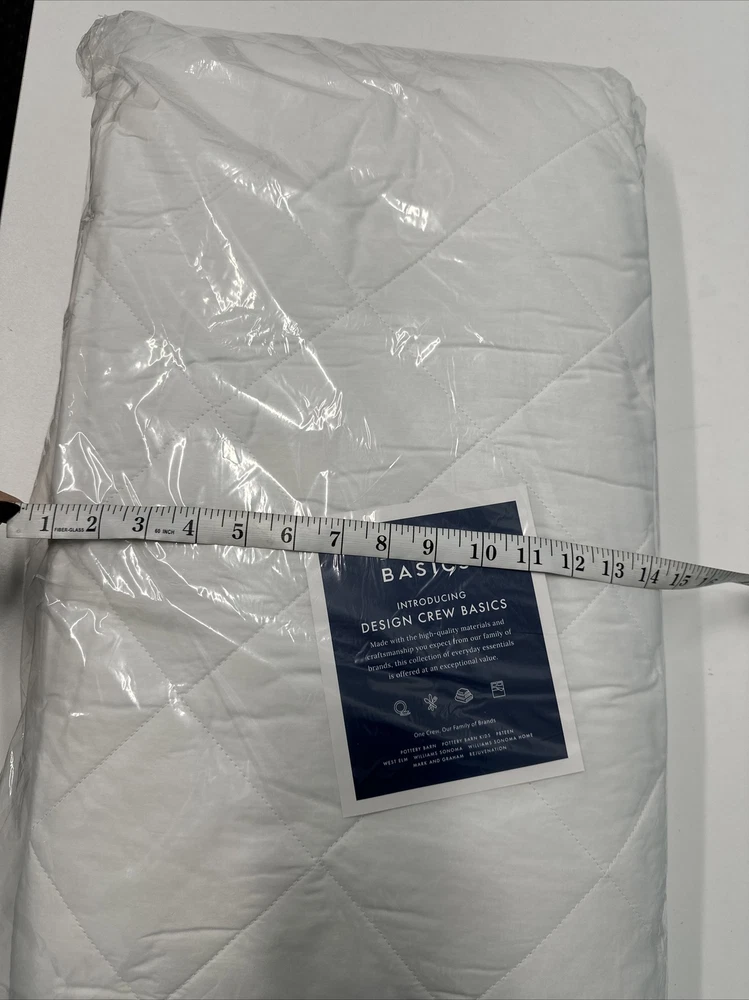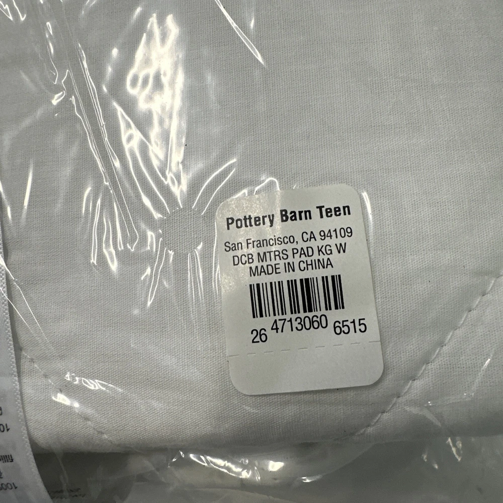 Pottery Barn Item: 4713060 Size: King Cotton/Polyester Size: 78x 80 inches Design Crew Basics Mattress Pad DETAILS YOU'LL APPRECIATEMade of 100% cotton. Reverses to non-woven 100% polyester. Mattress pad is filled with 100% polyester. Mattress pad is finished with diamond stitching. KEY PRODUCT POINTS300-thread count. Machine wash. Imported. NEW BW/WAREHOUSE
