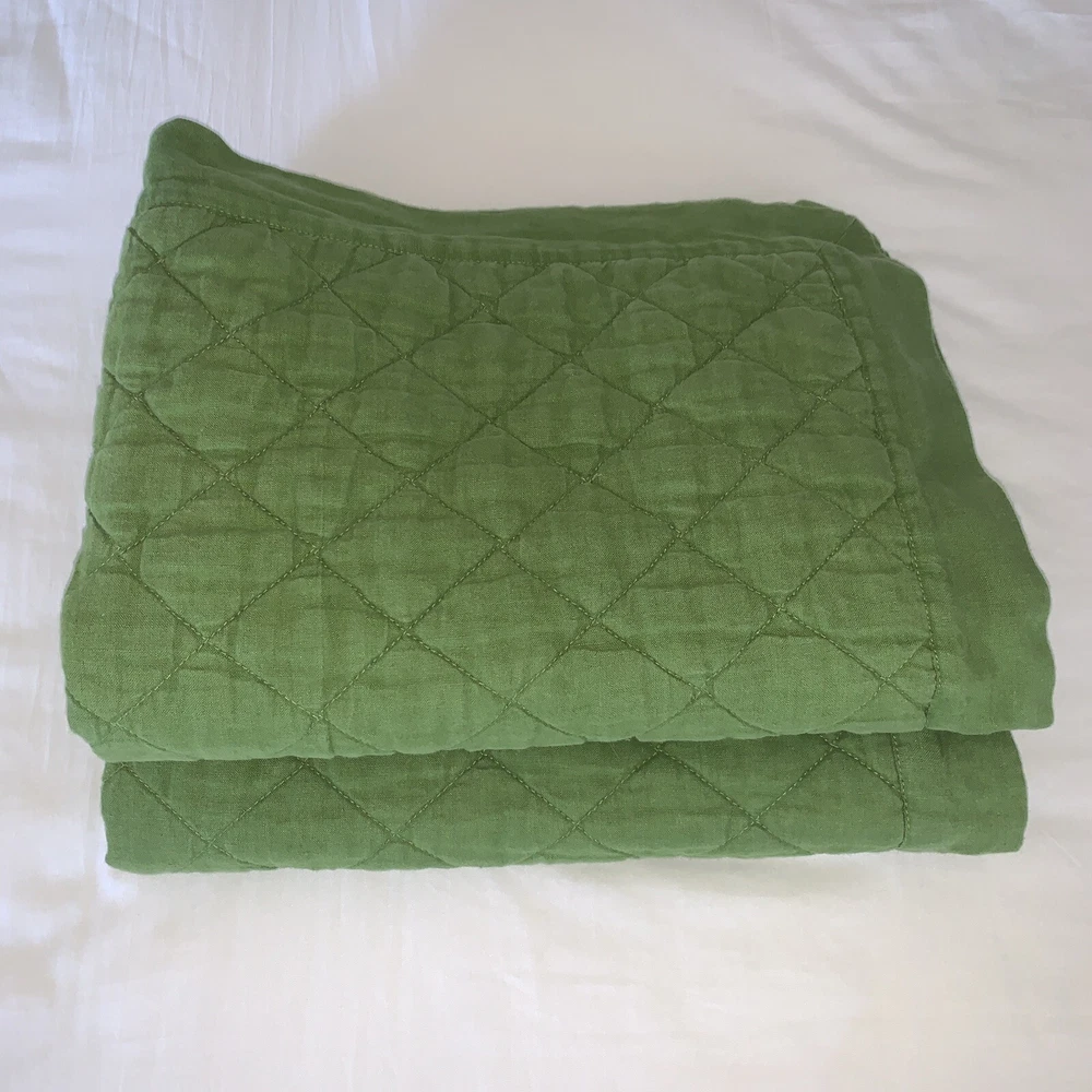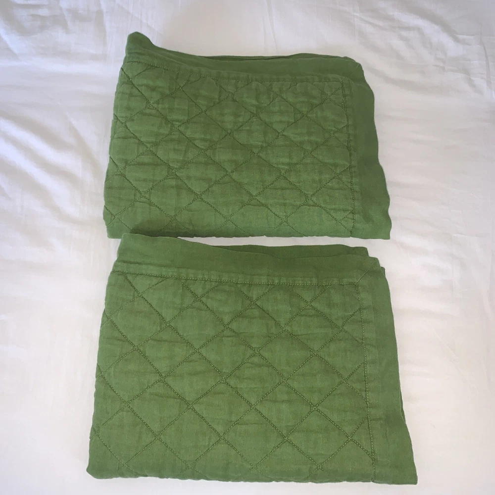 Nice pre owned condition. No stains, rips or holes. Smoke Free home. Reverses to solid fabric. This is a hard to find color which could coordinate with many Pottery Barn spring/summer floral fabrics. Set Includes: 2 Standard Pillow shams Always happy to combine shipping. Check out my other listings for more wonderful Pottery Barn bedding.