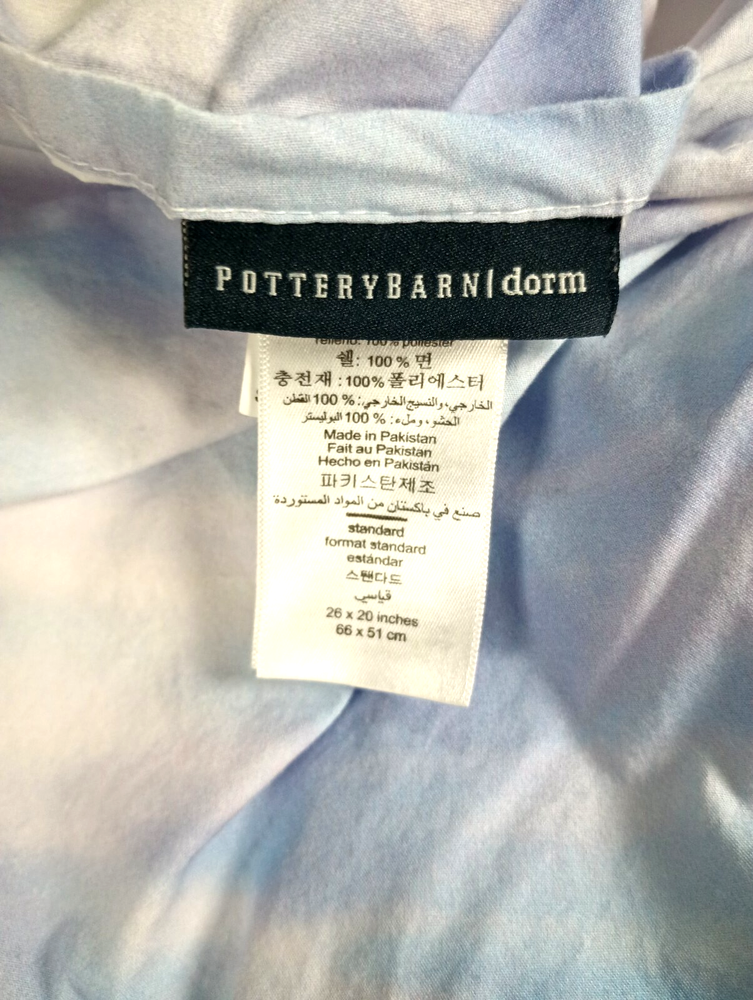 Experience the comfort and style of Pottery Barn with these dorm room pillow shams. Measuring 20x26 inches, they are a perfect fit for your standard-sized pillows. The vibrant blend of purples and blues adds a pop of color to any bedroom, ensuring a cozy yet chic look.Crafted from 100% cotton with a poly filling, these pillow shams offer the ultimate in softness and durability. They are machine washable, making them both easy to care for and long-lasting. Whether you're looking to brighten up your own space or searching for the perfect addition to your child's college dorm, these shams are an excellent choice.