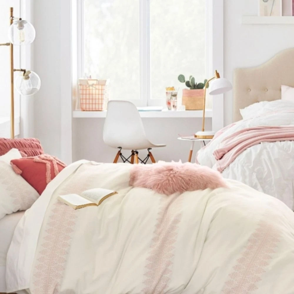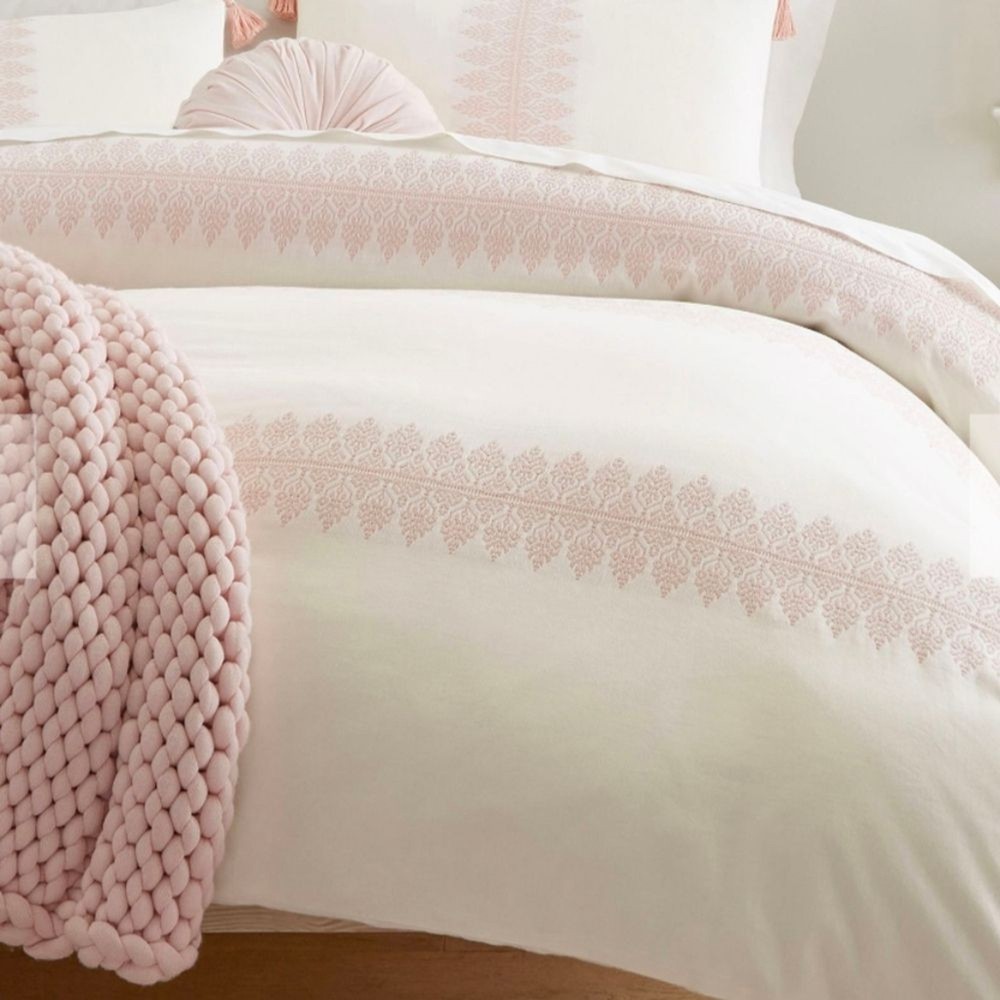 Pottery Barn Dorm Duvet Indiria White Embroidered Soft Pink Queen Double Questions? Leave a comment below!
