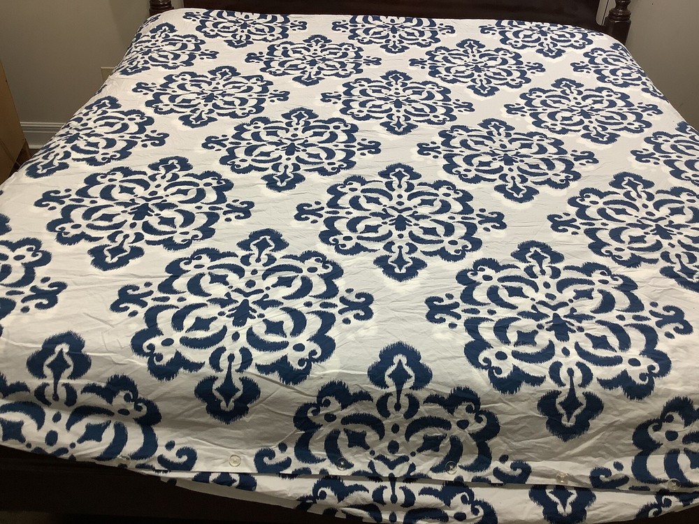 Pottery Barn Dorm Navy/white duvet cover Good used condition~ did not see any spots/holes/tears while taking photos 87x85 Will ship within 24 hours of payment