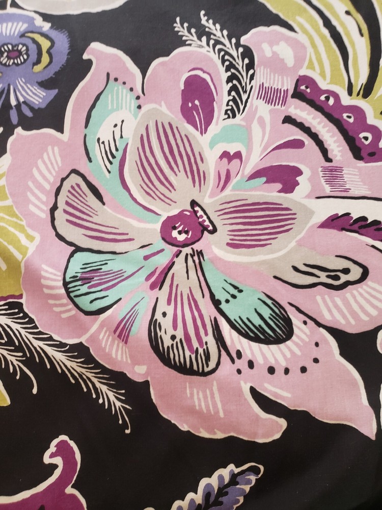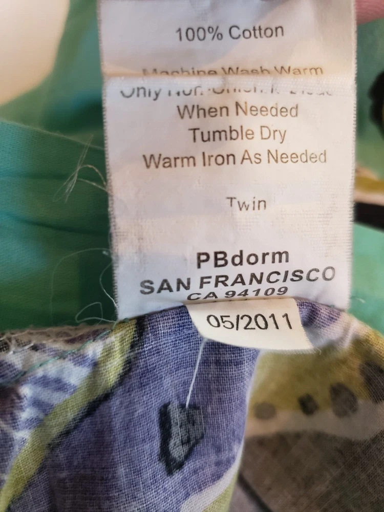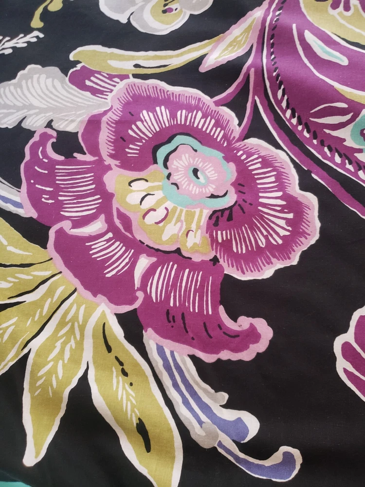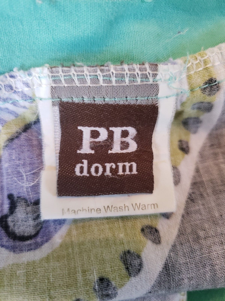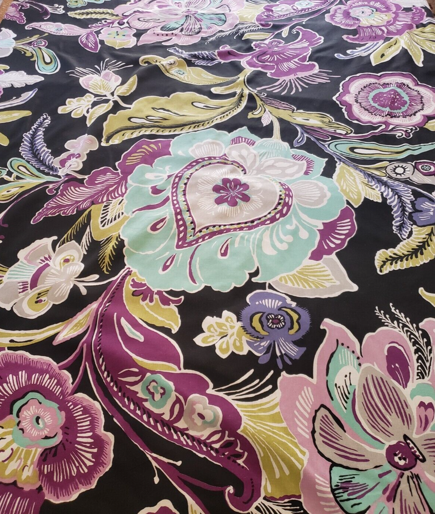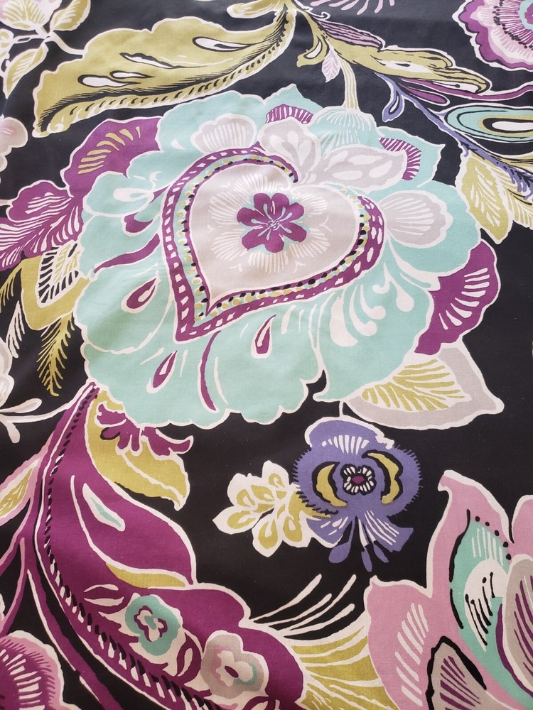 Preowned Pottery Barn Dorm Twin Duvet Cover featuring a bold large floral pattern in pinks, purple, black, and aqua. Reverse side is solid aqua. Button closure. Made in China of 100% cotton. There is one very tiny spot on the aqua side of the duvet, please see closup photo No returns accepted Free shipping
