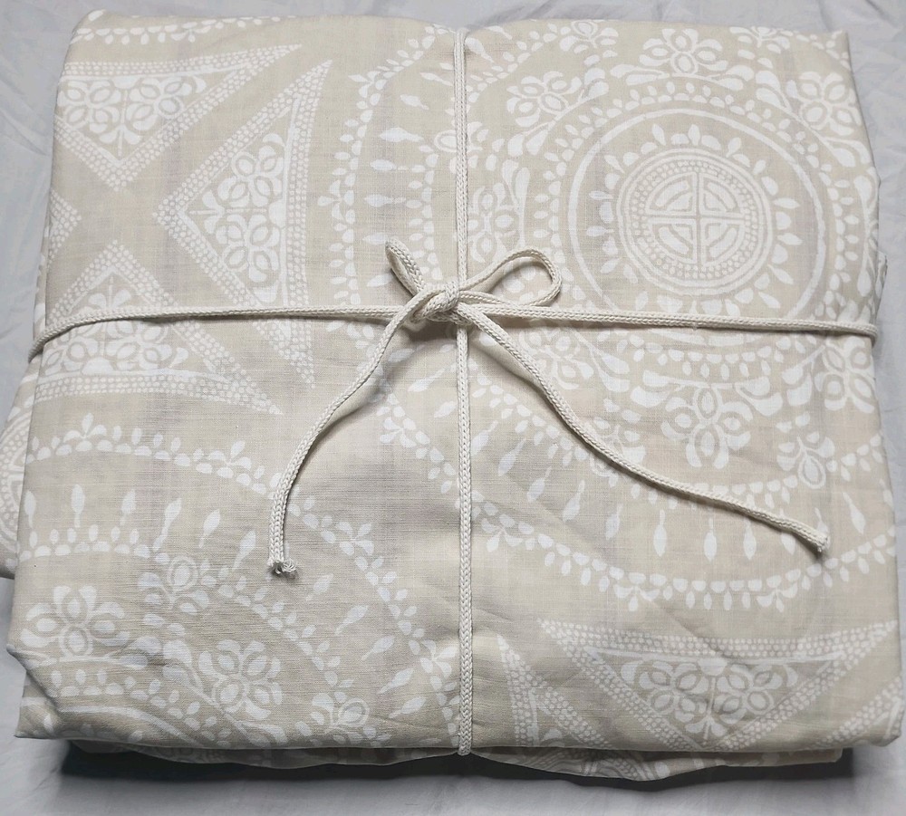 The Pottery Barn Dot Medallion Reversible Duvet is a luxurious addition to any bedroom, featuring a modern medallion pattern in a neutral sand color. Made of 100% cotton, this duvet cover is not only stylish but also sustainable, with a STANDARD 100 by OEKO-TEX certification. The reversible design adds versatility, while the zip closure makes it easy to keep your bedding looking fresh and polished. This duvet cover, with dimensions of 108" in length and 92" in width, is perfect for King and CaliKing beds, adding a touch of elegance to any bedroom decor.