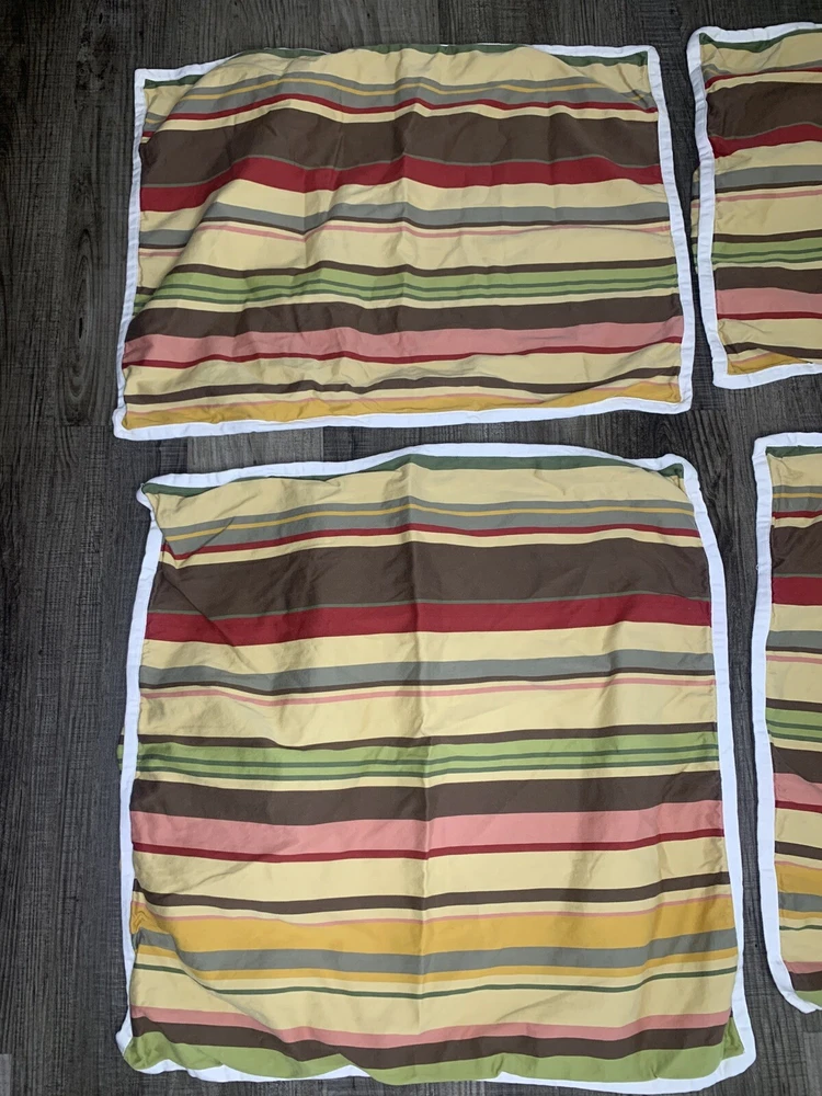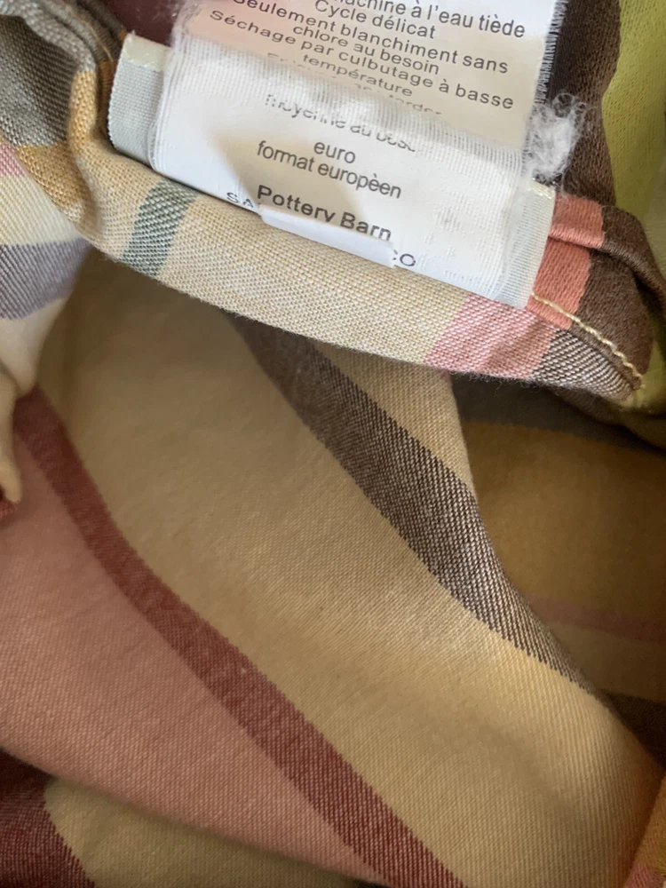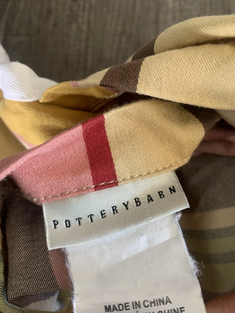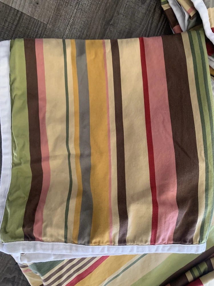 Nice and heavy cotton Pottery Barn Duncan Stripe Multicolor Duvet Cover W/ 4 Pillow Shams Cotton King 2 euro shams 2 standard pillow covers 1 duvet Check out last pictures of flaws that aren’t very noticeable on bed Ships fed ex standard shipping with delivery confirmation