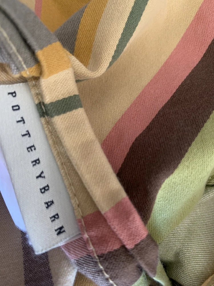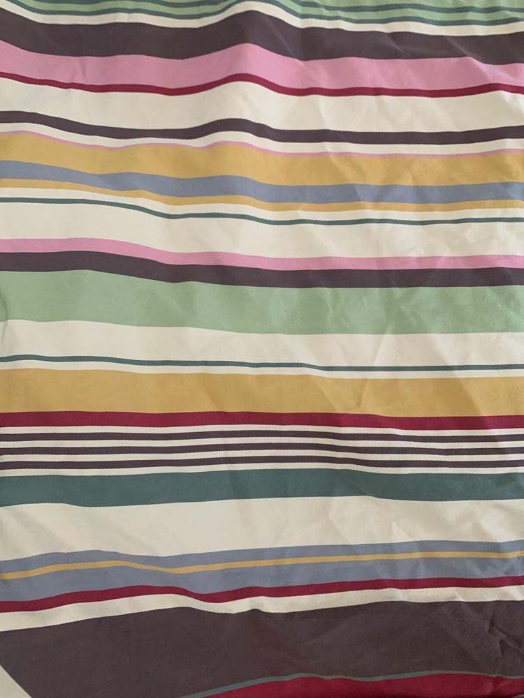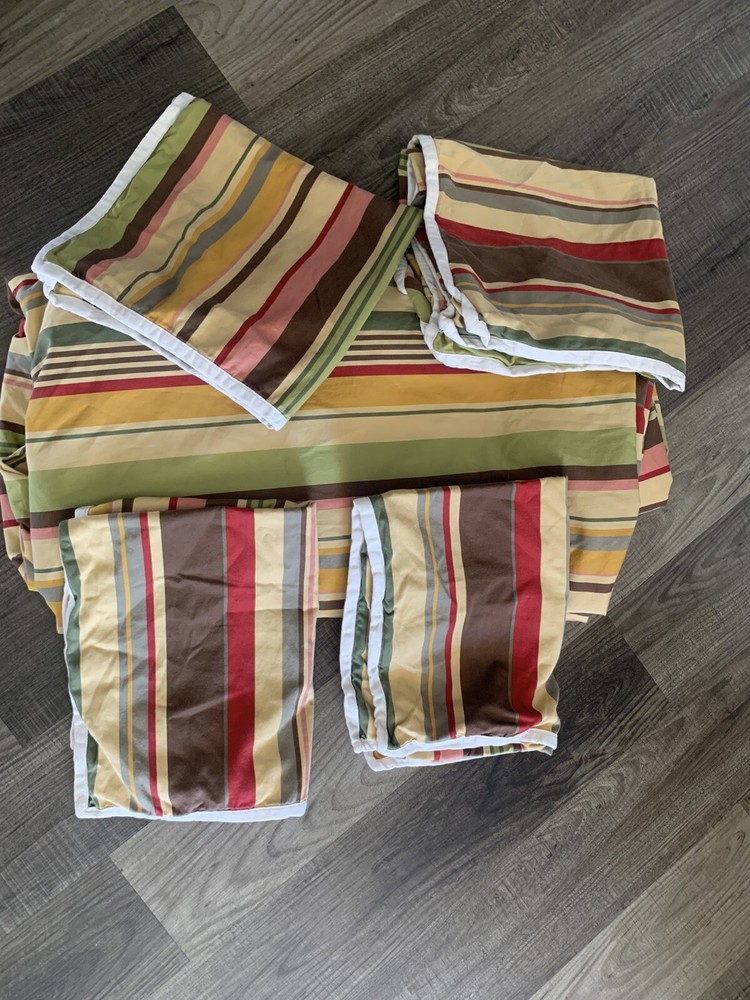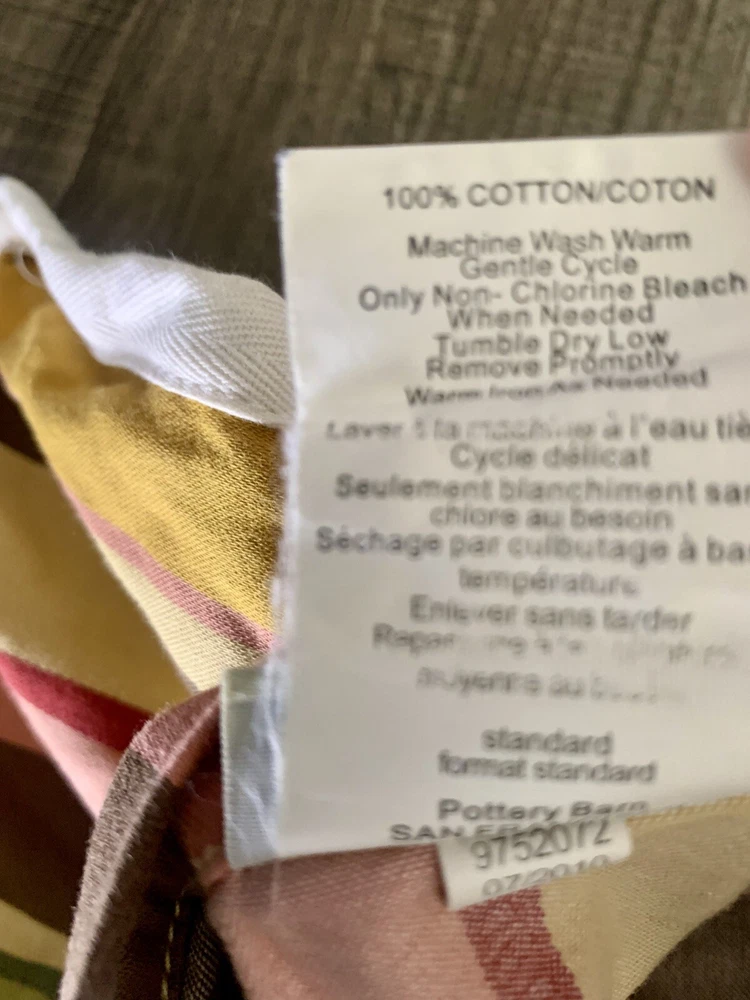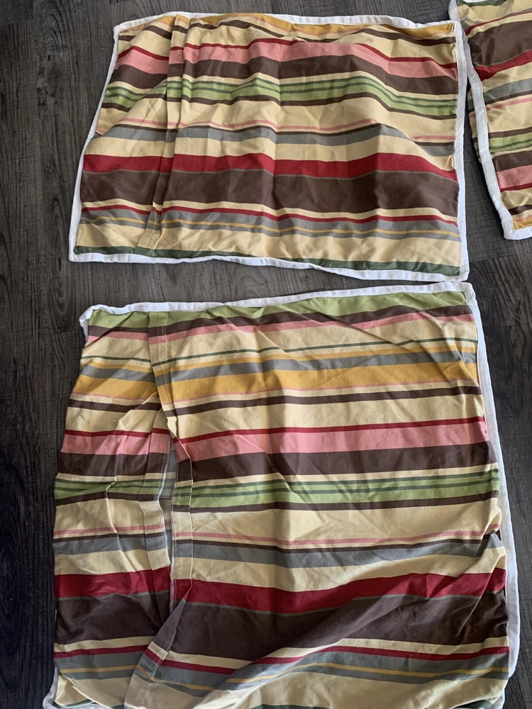 Nice and heavy cotton Pottery Barn Duncan Stripe Multicolor Duvet Cover W/ 4 Pillow Shams Cotton King 2 euro shams 2 standard pillow covers 1 duvet Check out last pictures of flaws that aren’t very noticeable on bed Ships fed ex standard shipping with delivery confirmation