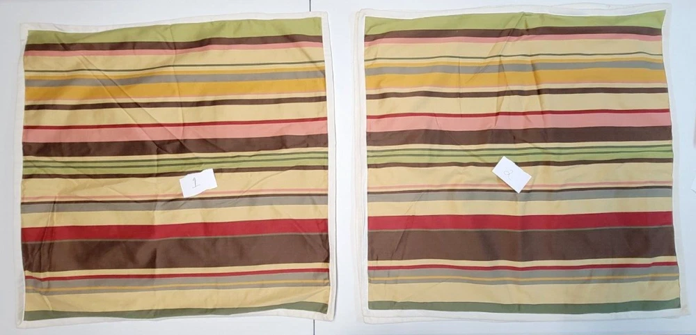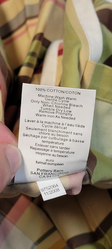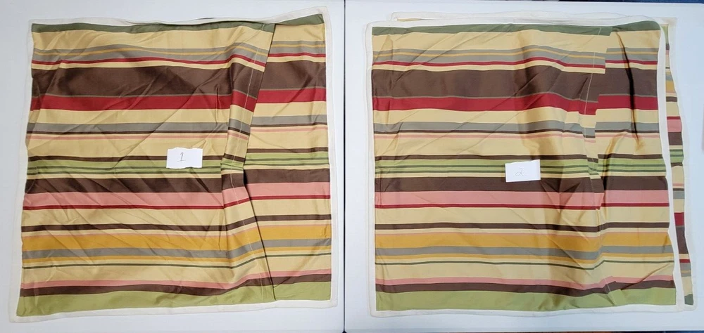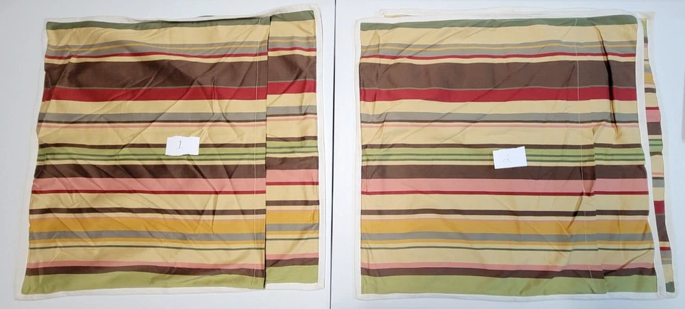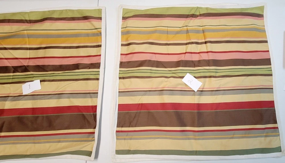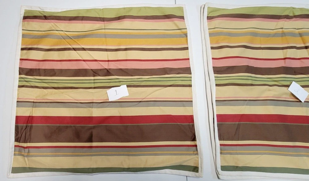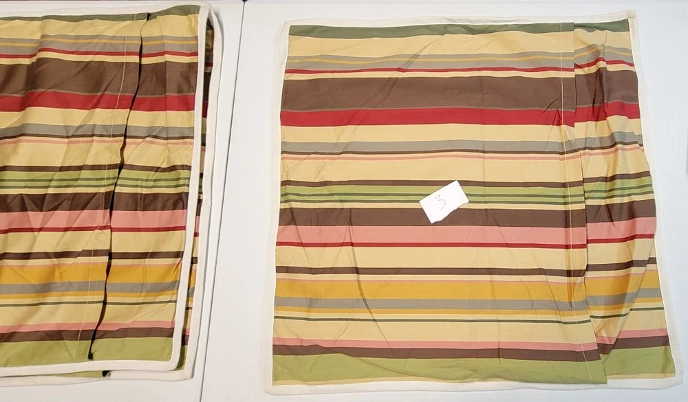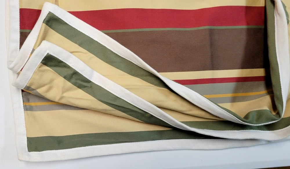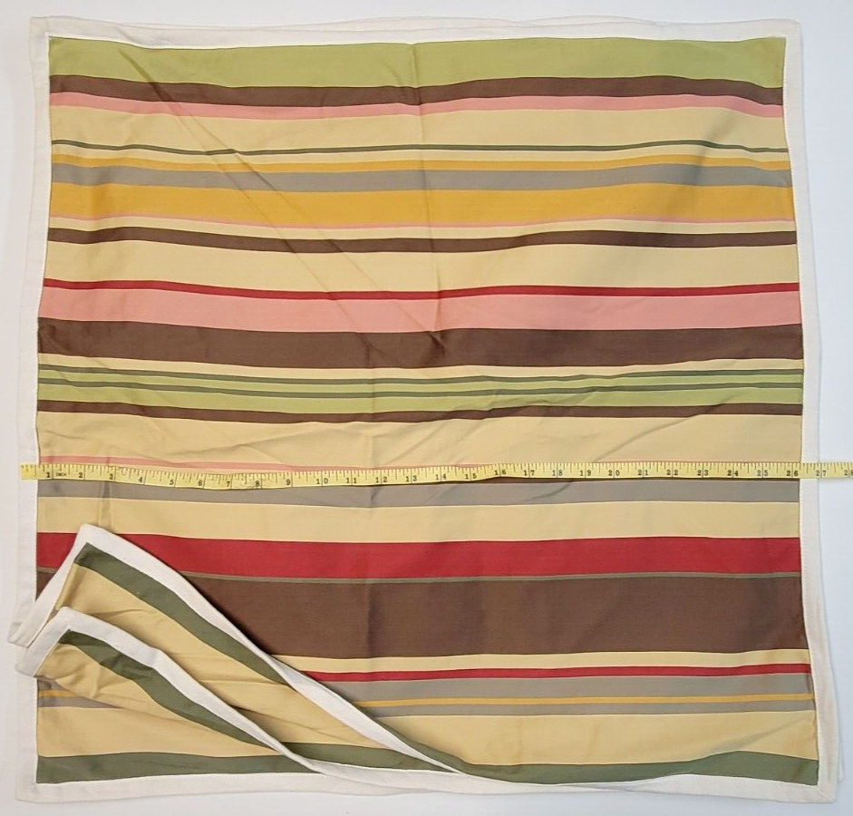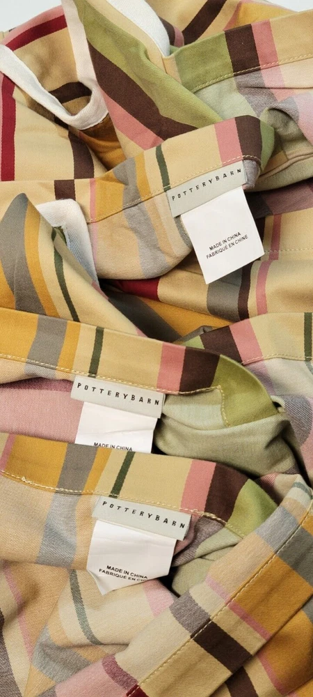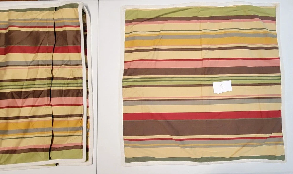 Pottery Barn Duncan Stripe Set of 3 EURO Pillow Shams Tan Gold Brown Green Red Set of 3 shams in very good, gently used condition. No holes or tears. Light, normal handling/wash wear. Light, random, tiny imperfections but minimal. Please see photos for more description. Approx. 26" x 26" Appropriate care will be given when shipping. Any questions feel free to ask. Thank you!
