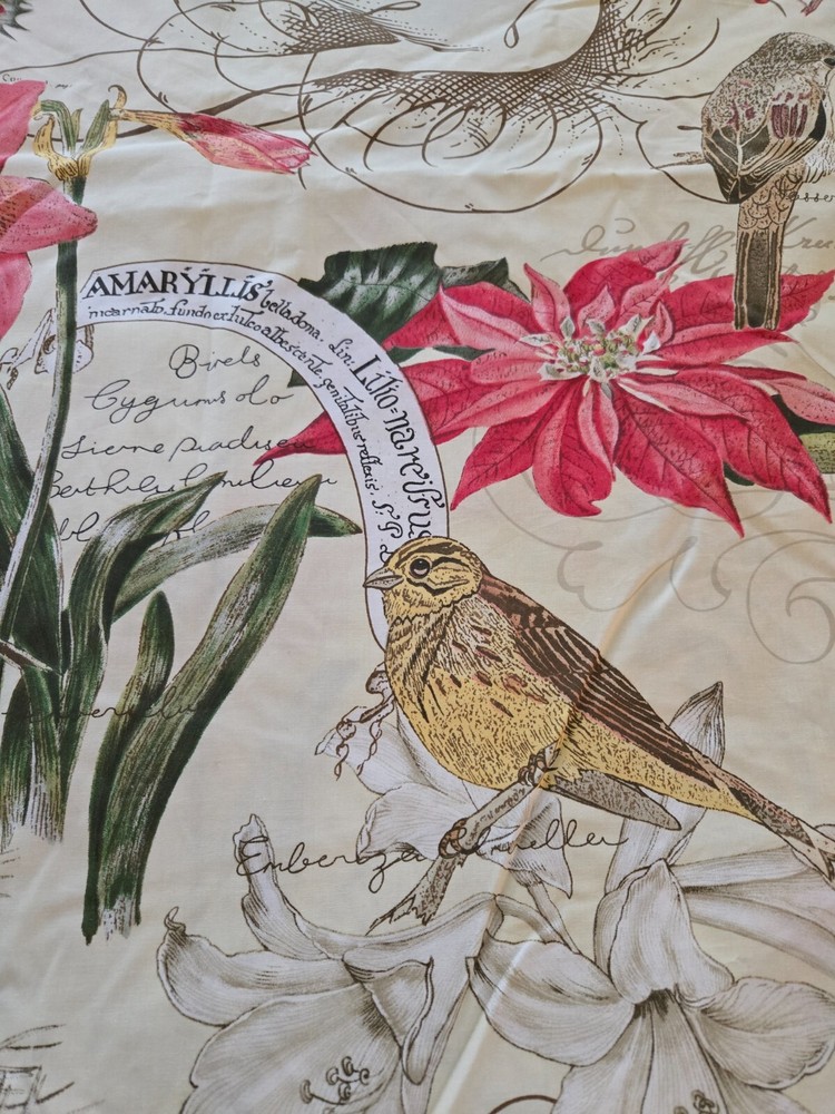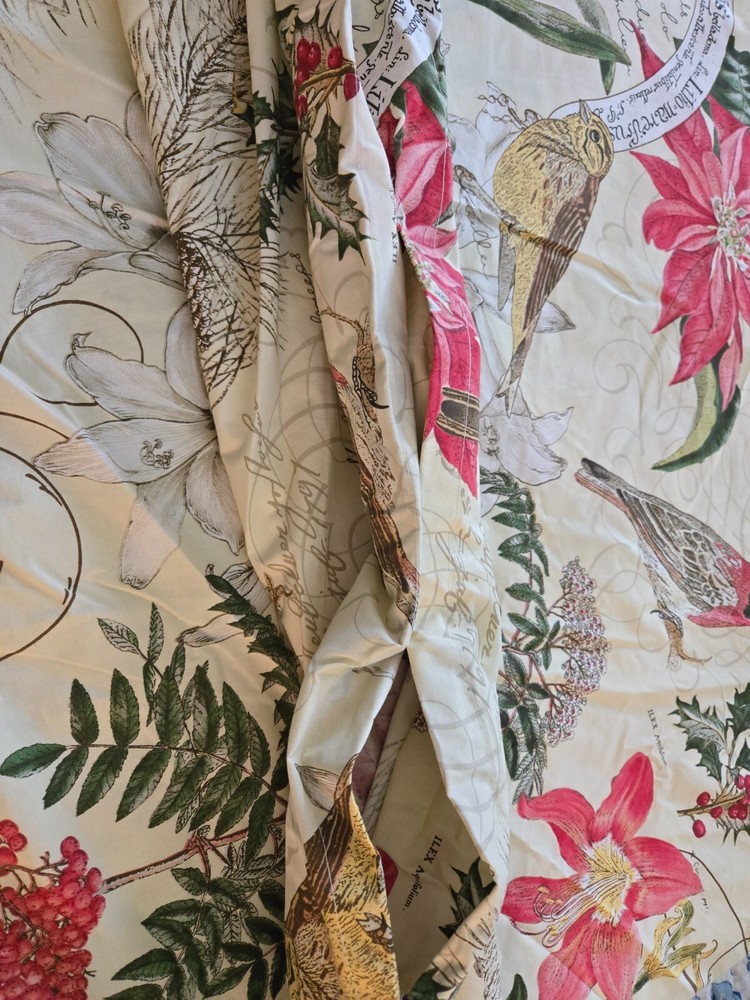 Pottery Barn Duvet Cover. Christmas. Birds & Amaryllis. Organic Cotton. Full/Queen. 88" x 91". Closes with buttons. Made in Israel. Excellent condition with no rips, tears or stains. Looks and feels s...