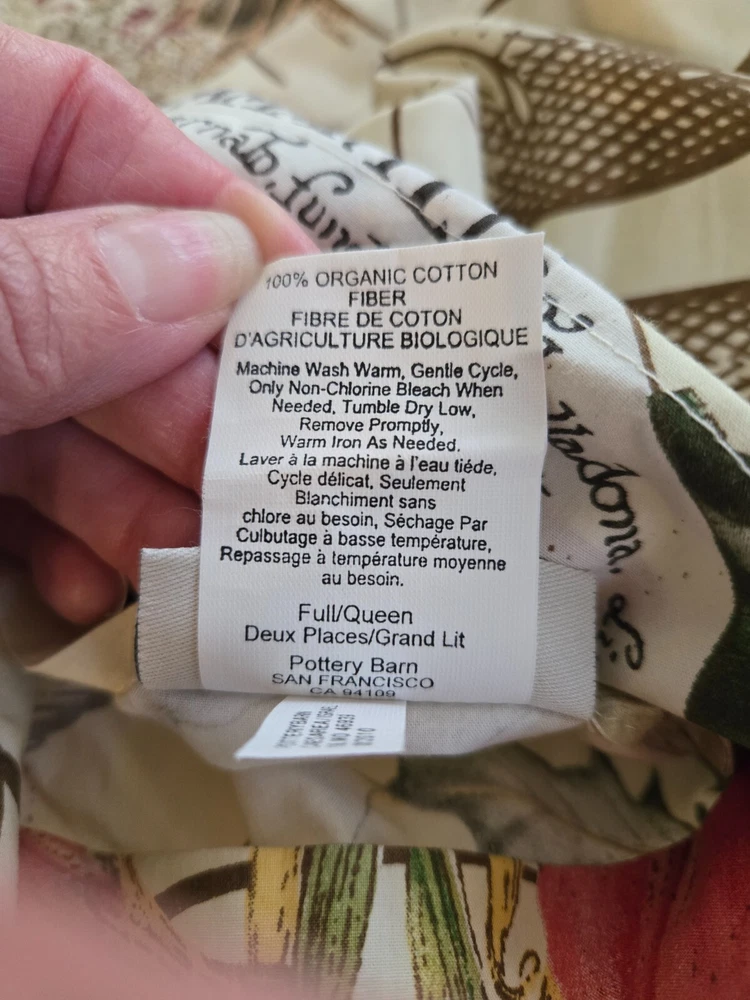Pottery Barn Duvet Cover. Christmas. Birds & Amaryllis. Organic Cotton. Full/Queen. 88" x 91". Closes with buttons. Made in Israel. Excellent condition with no rips, tears or stains. Looks and feels seldom used.