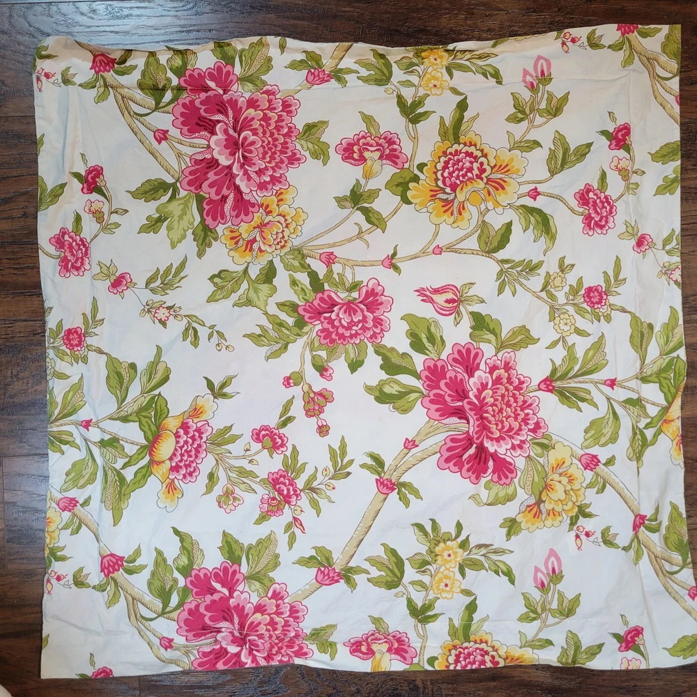 Gorgeous and well made, 1 duvet cover, 2 Euro shams, 1 unknown rectangular item (possibly a Valance). Prairie, cottage core, granny, french country cottage, peonies, shabby chic, pink green floral Fre...