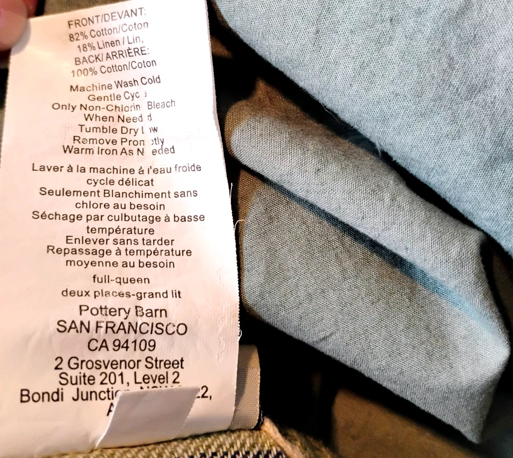Pottery Barn Duvet Cover - Full/Queen - 86 x 84 inches 2 Standard pillow shams - 21 x 26 inches 2 Euro shams - 26 x 26 inches Cotton & Linen blend 5 piece set