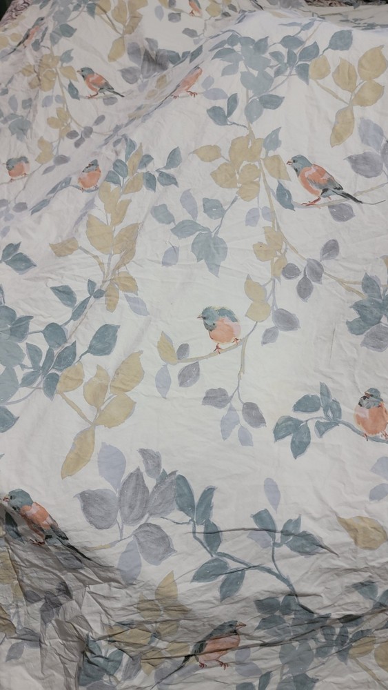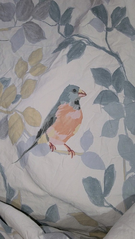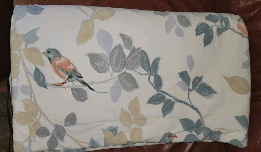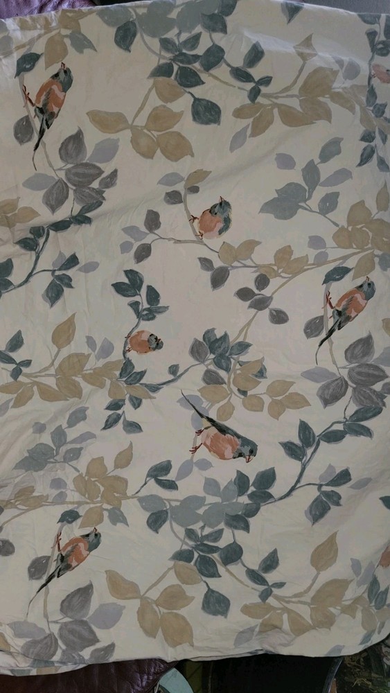 The Pottery Barn Queen Organic Cotton Birds Duvet Cover is a stylish addition to any bedroom. Made from organic cotton, this rectangular duvet cover features a charming bird pattern with orange and blue birds. Neutral soft colors. It is machine washable, reversible. Button closure and perfect for those looking to add a touch of nature to their bedroom decor. Good condition and no stains noted. Please see all the pictures. I do not accept returns. I am happy to provide extra pictures on request.