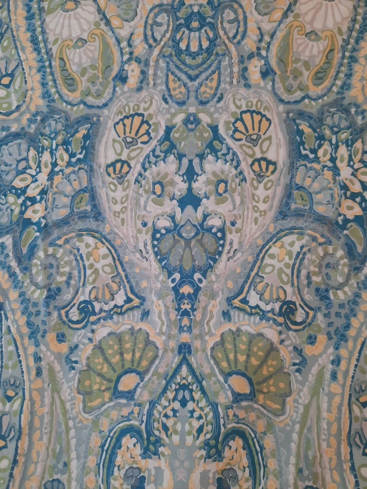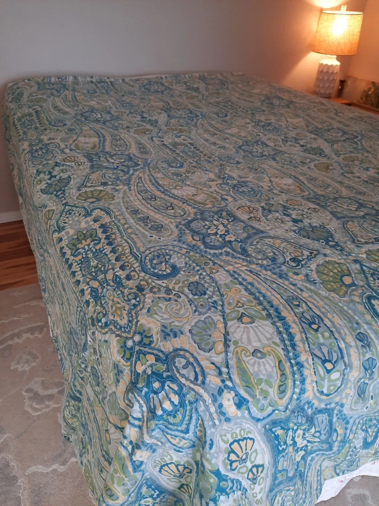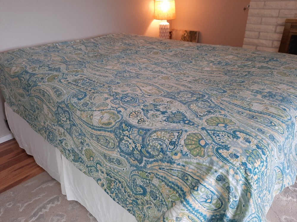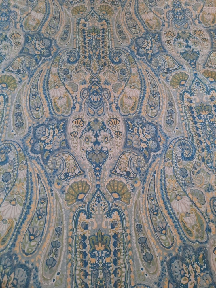 Item: Pottery Barn Duvet Cover Size: Full - Queen, same print both sides and reversible Color/Pattern: Rosalie Paisley, soft shades of blue, green, yellow, gray on off white background print Brand: Pottery Barn Condition: Pre-owned and well maintained, no holes or tears, item is in nice condition. Button closure, all buttons are intact, original manufacturer label sewn inside duvet . Freshly laundered at time of listing. Please see photographs for additional details. USPS shipping. Thank you, Chantal