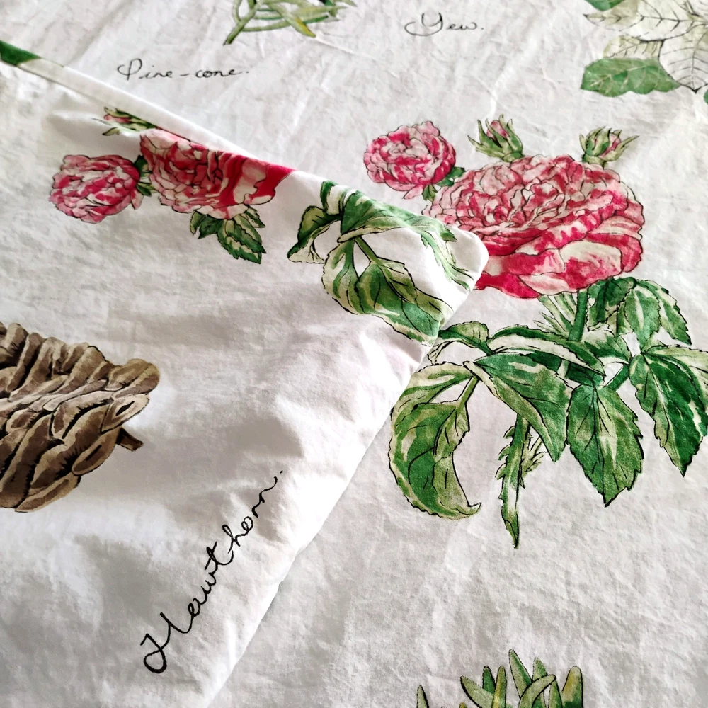 Wrap your bed in the cozy comfort of this Pottery Barn Full/Queen Duvet Cover, featuring a charming Holiday Botanical pattern that brings a touch of nature's festive beauty indoors. The multicolor design, showcasing an array of trees, flowers, and pinecones, creates a warm and inviting atmosphere perfect for any bedroom. Crafted from 100% cotton, this duvet cover promises breathability and softness, ensuring a restful night's sleep. Its dimensions measure 87 inches in width and 83 inches in length, fitting full and queen-sized beds perfectly. The traditional style, coupled with practical features like machine washability and reversibility, makes it a functional and stylish addition to your bedding collection. Pottery Barn Duvet Cover Holiday Botanical Full/Queen 100% Cotton 87 x 83 inches White