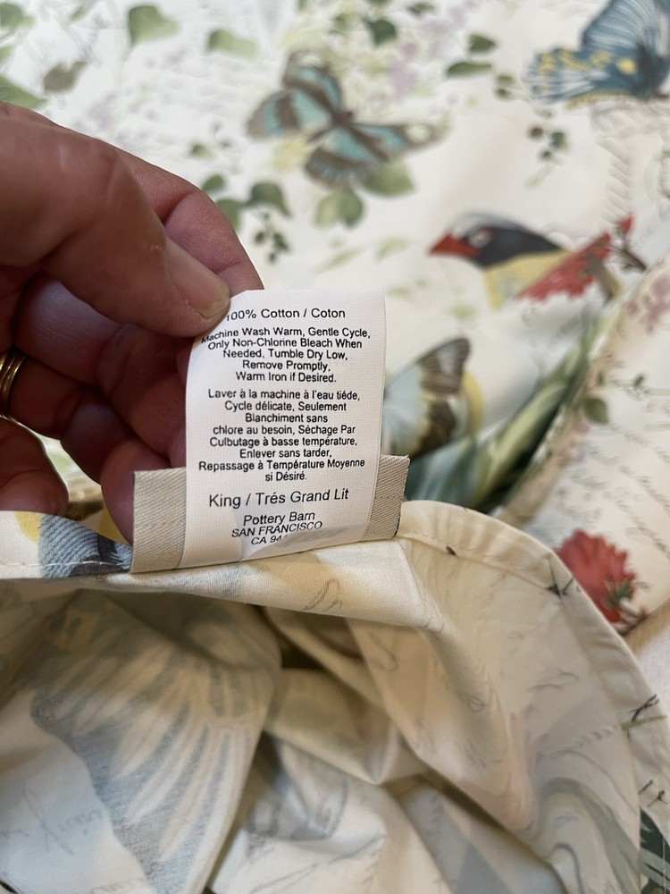 Freshly dry, cleaned, and ready for its new home… It was used only for staging in a home No issues It comes with two standard shams One king duvet cover as shown