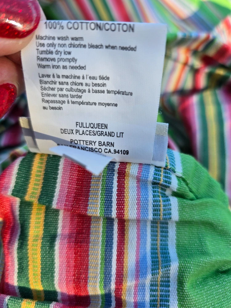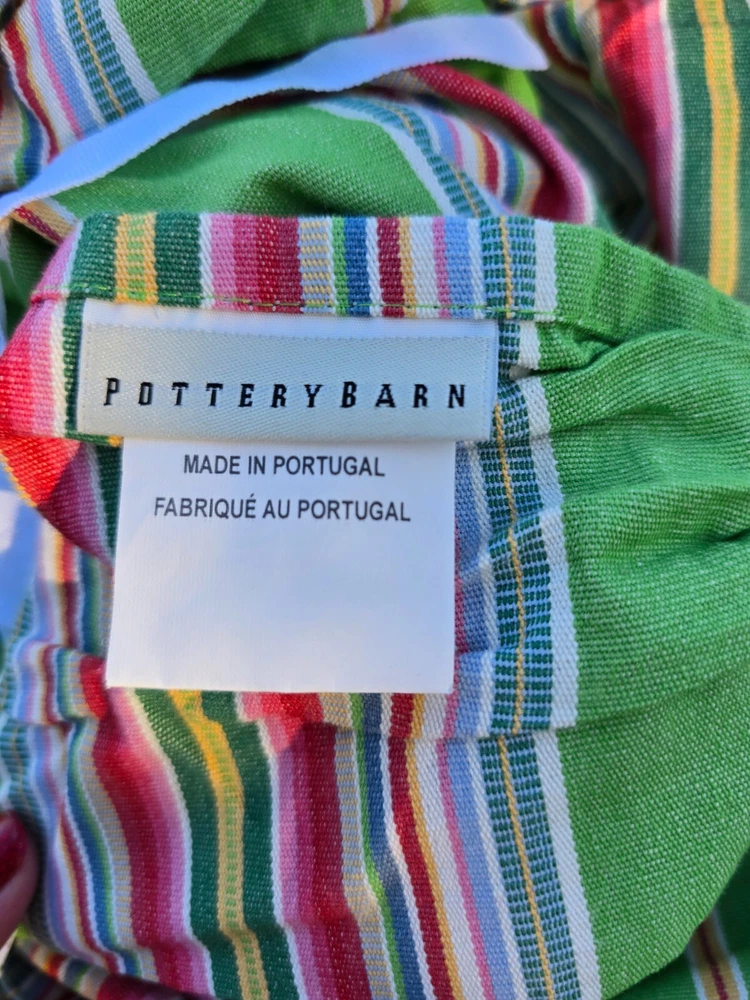 Pottery Barn Duvet Cover Queen Stripe Lime Green Cotton Portugal Condition Pre pre owned Very good (just a few spots) Buttons closure Bright color Reversible bold stripe pattern on lime green from Pottery Barn 2006. Buttons all intact. Insert your own duvet. Heavy cotton canvas! This may reflect higher shipping. Made in Portugal Final sale