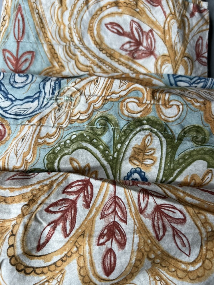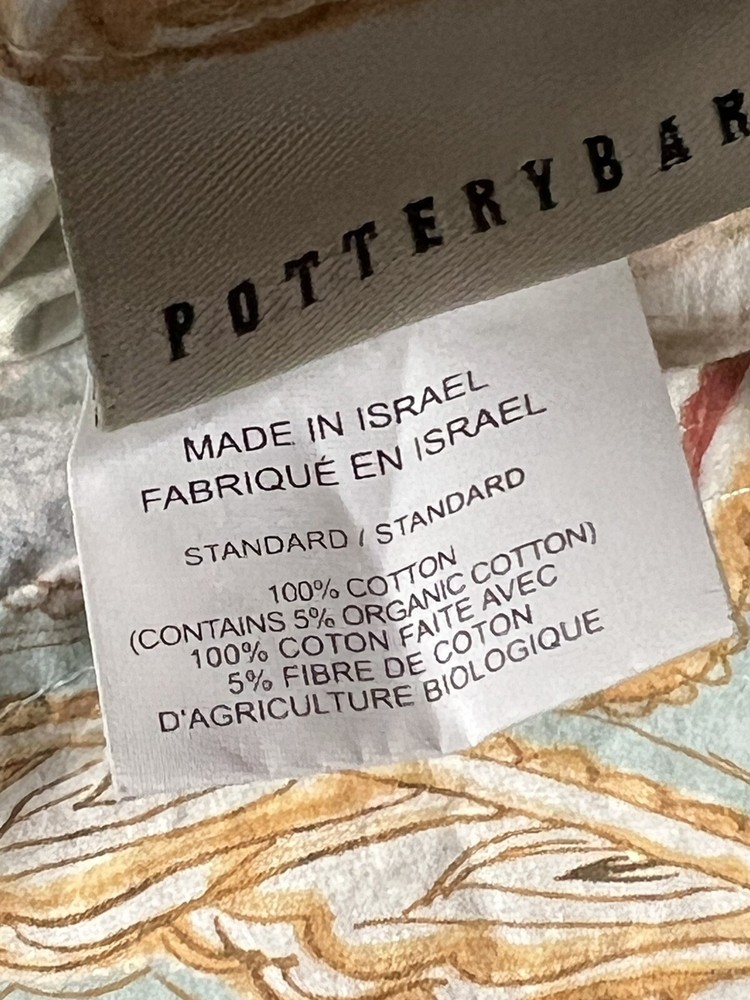 This is a one-of-a-kind queen/full duvet set from Pottery Barn. Made in Israel. Made in 2015. This set is in excellent-like new condition. Includes two standard pillow shams and full/queen duvet cover. Buyer will be so very happy with this set! It’s worth it and pictures do not do justice. Will look absolutely lovely once you set it.