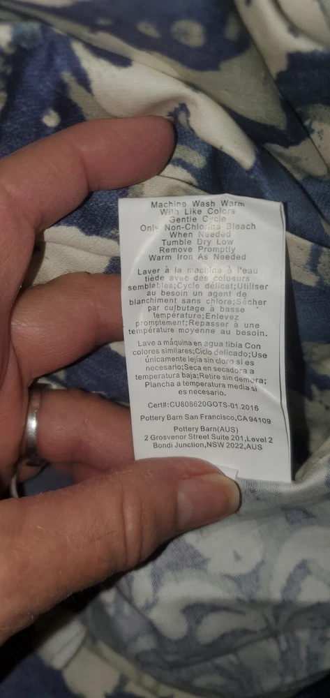 Add a touch of elegance to your bedroom with this four-piece Pottery Barn duvet and sham set. The california king duvet cover and 2 euro pillow shams , 1 king pillow sham are made of 100% organic cotton in a beautiful blue and cream color with a floral pattern. The backside solud blue. The set has buttons closure with inside corner ties, machine washable for easy care. Please see all pictures and ask questions before purchase. I am happy to send extra pictures. I do not accept any returns, regardless of reason. No return labels provided. Thank you.
