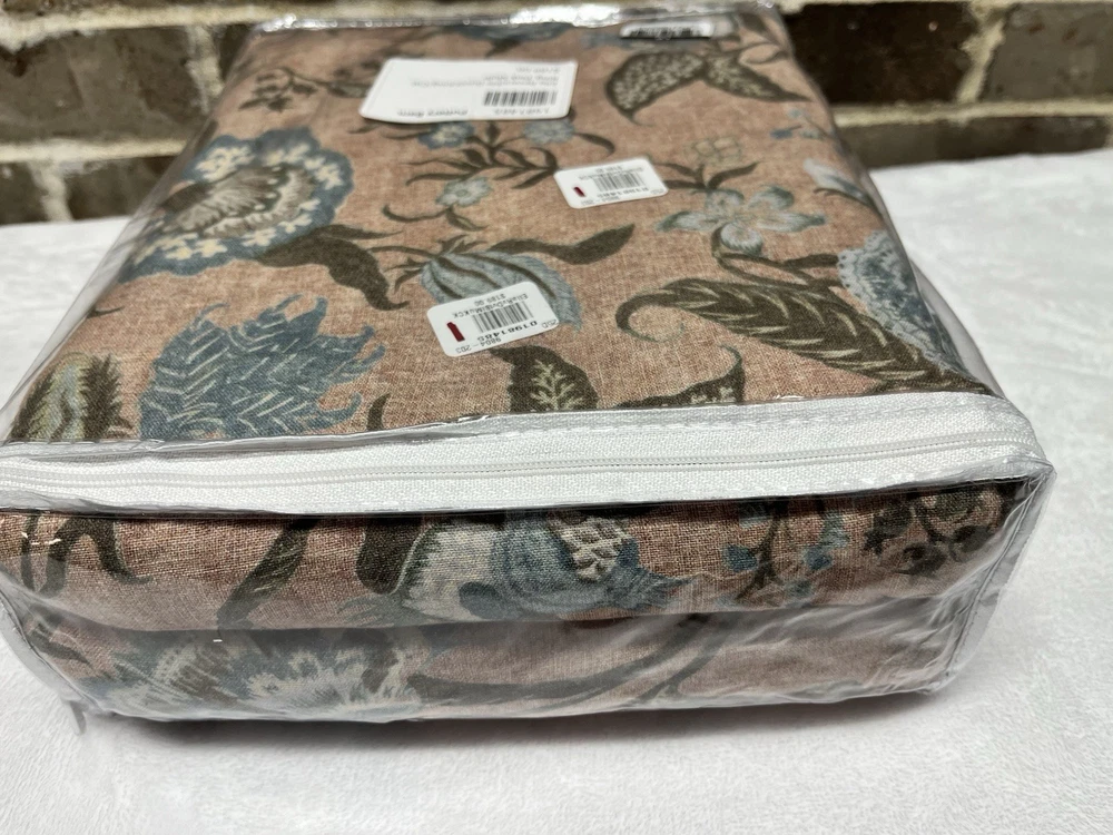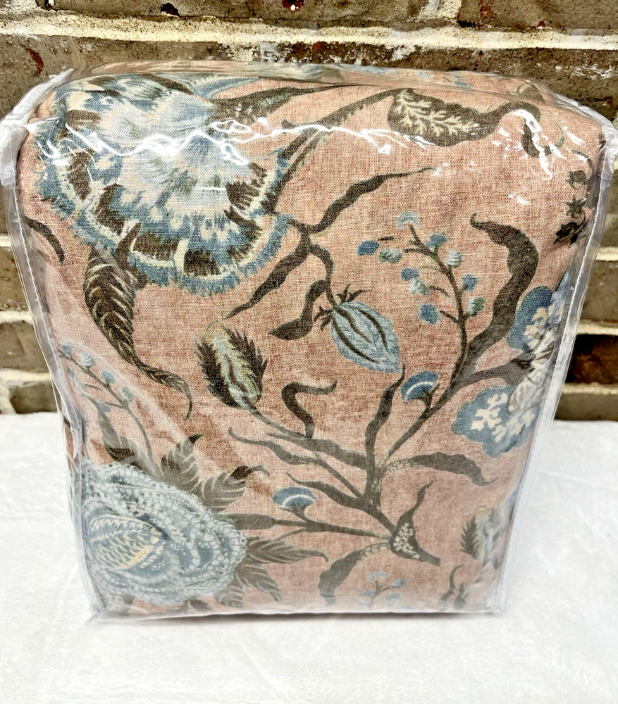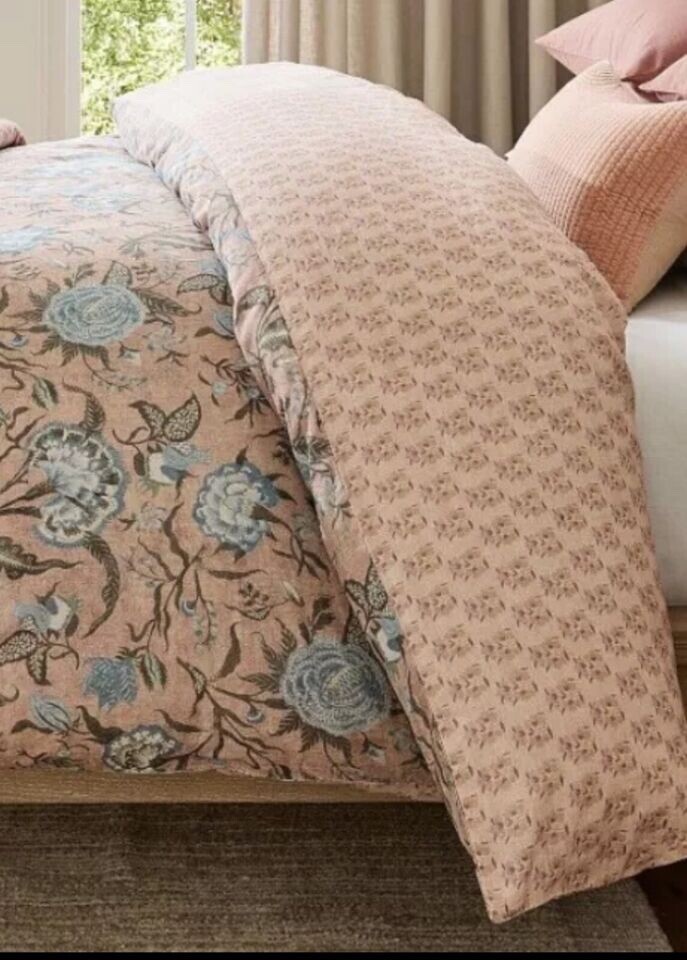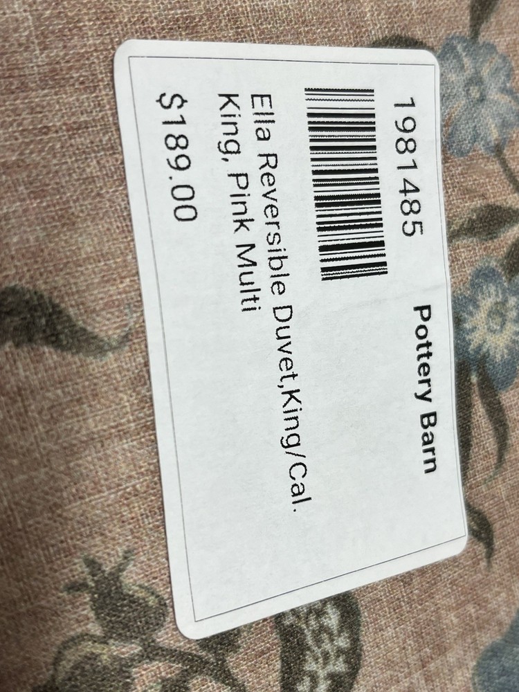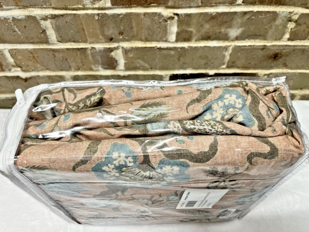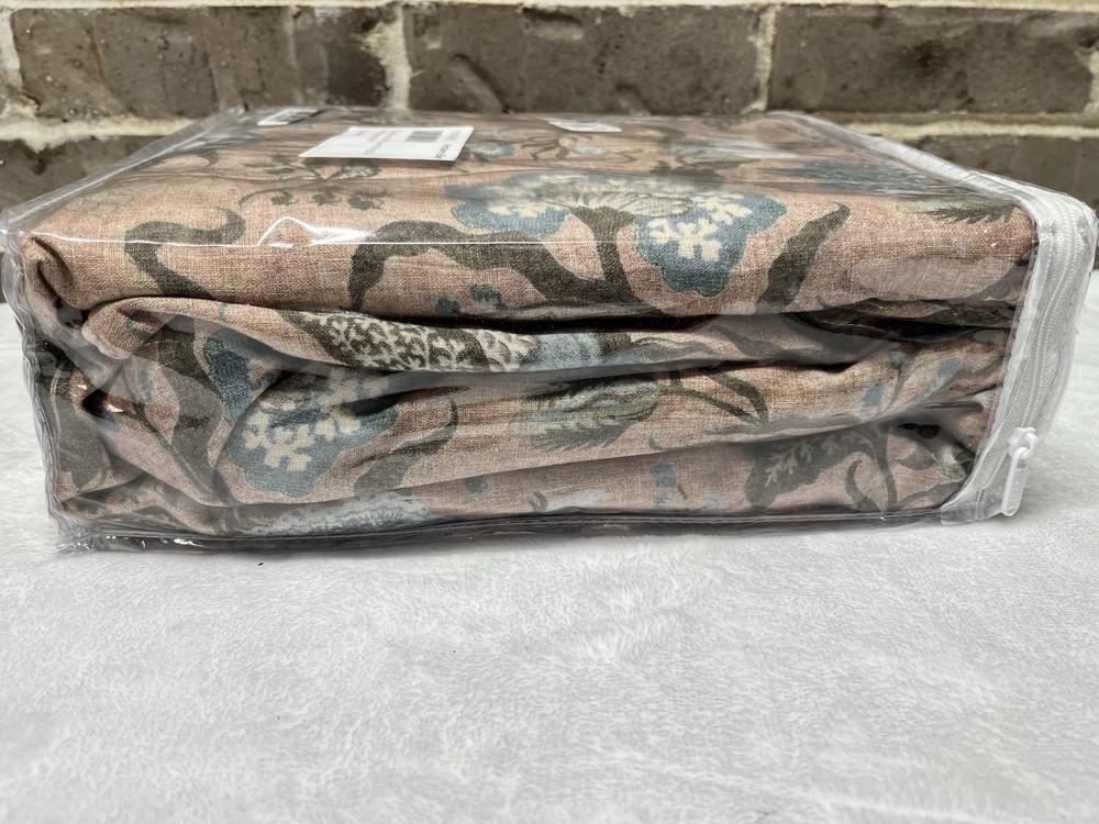 Pottery Barn Ella Reversible Duvet Cover King/California King Size 92" x 108" New with Sticker Tag PB describes as: Drawing inspiration from vintage kalamkari, the art of Indian block printing, we've reimagined tradition in a fresh, modern way. Our design features calming hues of blush and blue to soften your space. A repeating floral pattern on the back gives this bedding two-in-one versatility. Made from 65% cotton and 35% linen. Reverses to same. Duvet features a zipper closure with inner ties that keep insert in place. Machine wash in cold water separately on gentle cycle. Use only non-chlorine bleach, if needed. Tumble dry on a low; remove promptly. Warm iron as needed. King/California King Duvet: 92" l x 108" w
