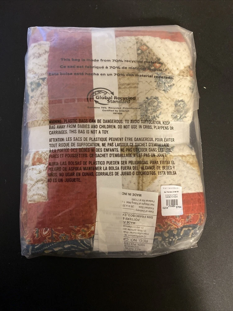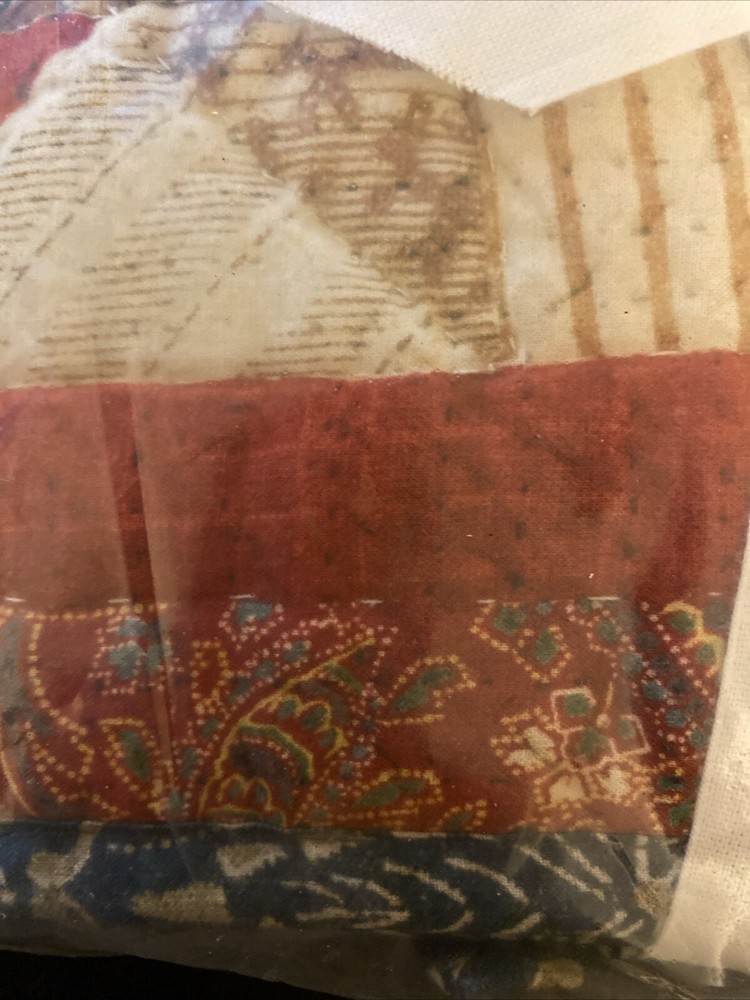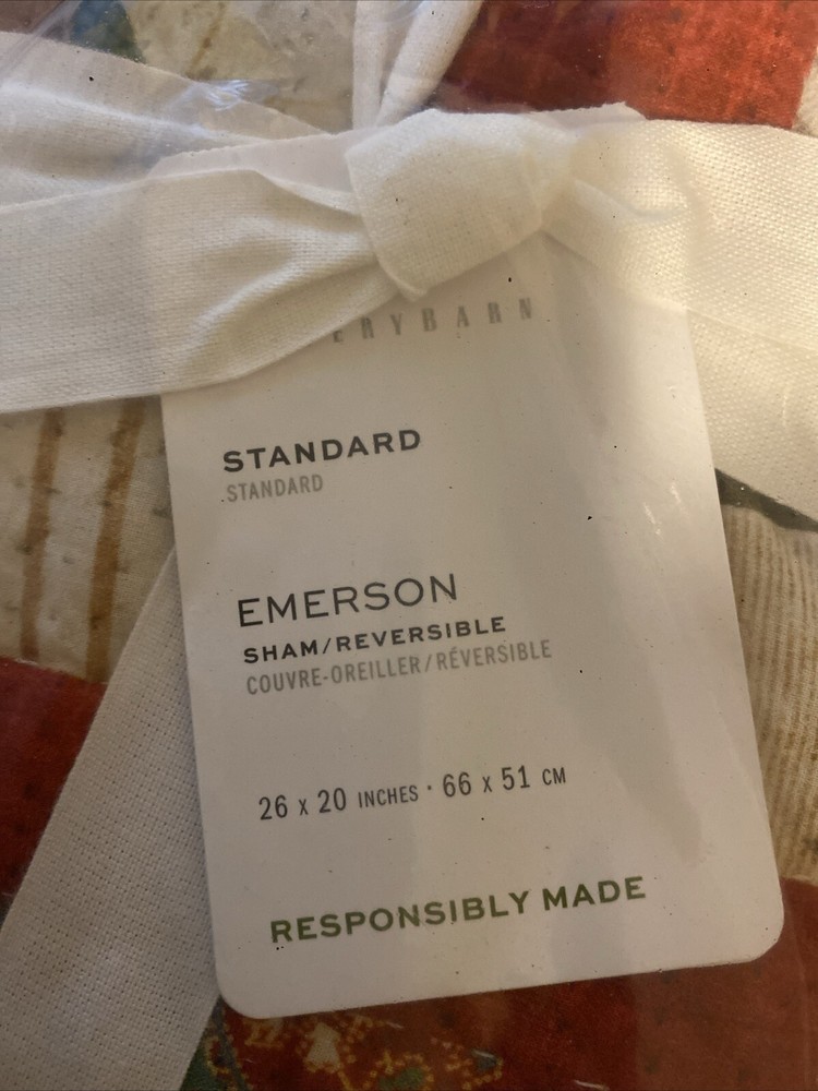 Add a touch of elegance to your bedroom decor with this beautiful Pottery Barn EMERSON Standard Sham Quilted Pillow Sham. The rectangular pillow sham is designed with a patchwork pattern and a multicolor scheme that complements any country style. Made of cotton and filled with polyester, the sham is machine washable and easy to maintain. Measuring 26 inches in length and 20 inches in width, this reversible sham is perfect for any standard size bed. The sham features a quilted design and is part of the Pottery Barn Emerson Sham product line. Made in India, this pillow sham is a great addition to your bedding collection. New with tags