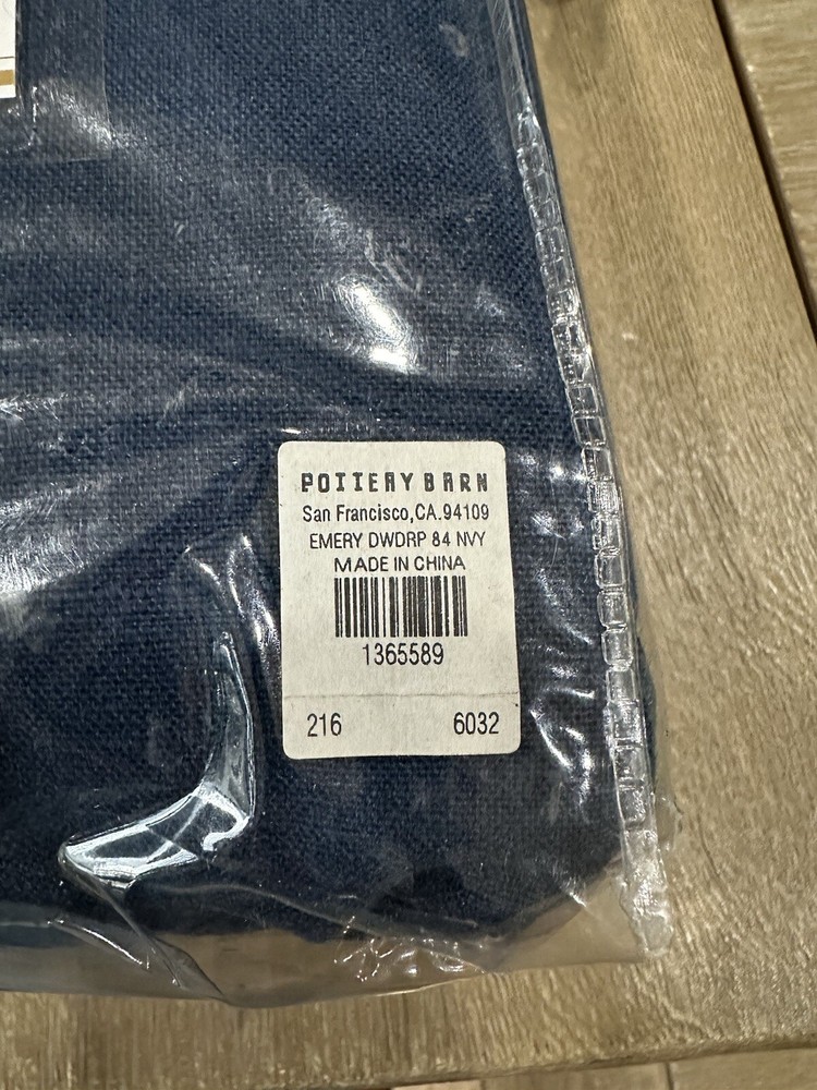 You are purchasing one Pottery Barn Emery Drape in midnight blue (the older version 2016, that is a solid blue not the newer version that looks a bit like denim) size is 100x84" L cotton lining Style is 3 in 1 new in package.