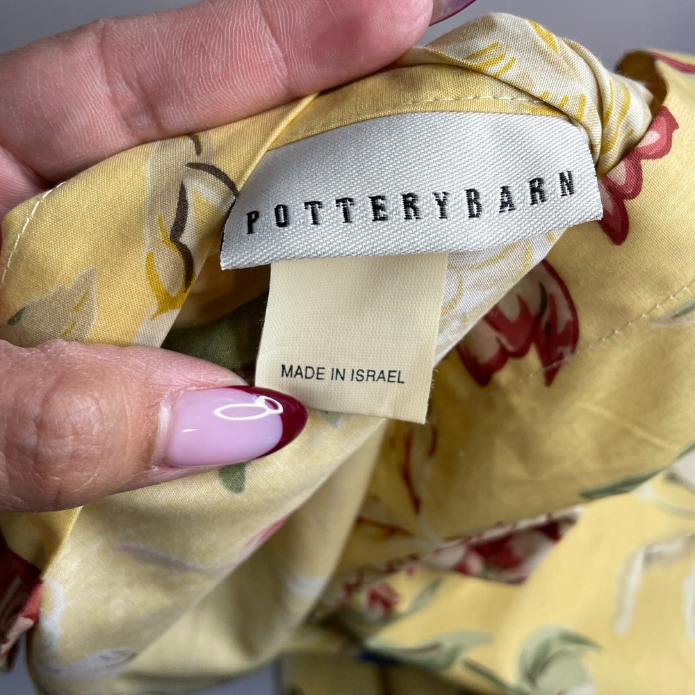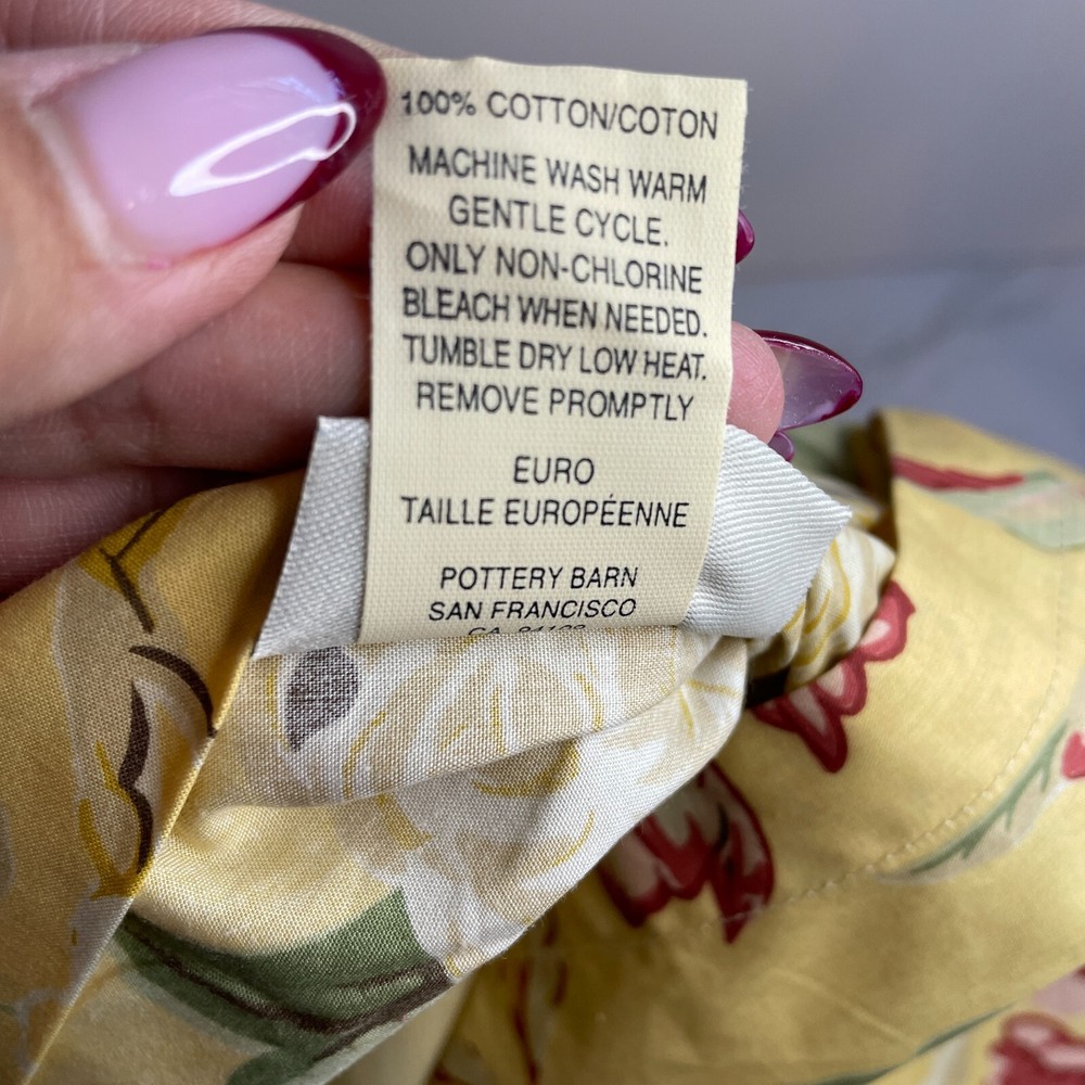 Adorn your bedroom with the charming elegance of the Pottery Barn Elodie Euro Shams. Featuring a vibrant yellow floral pattern, these square pillowcases bring a touch of French Country style to your decor. Crafted from 100% cotton, they promise both comfort and durability. Each sham measures 26 inches, fitting seamlessly on any Euro-sized bed. Designed with convenience in mind, they are machine washable, ensuring easy care. Made in Israel, these shams add a lovely accent to your room with their premium quality and stylish design.