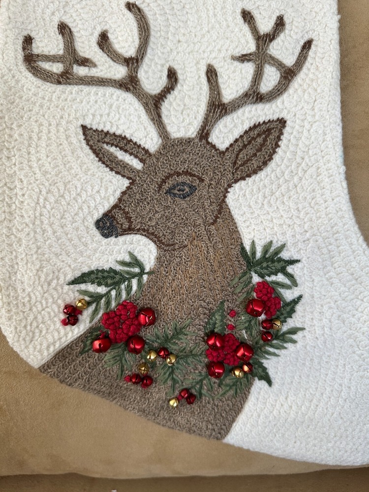 Pottery Barn Embroidered Crewel Icon REINDEER Stocking NEW WITH TAGS...