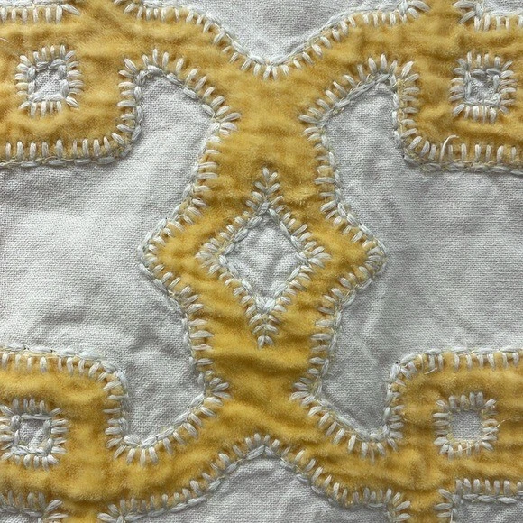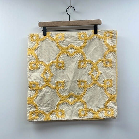 Excellent preowned condition! Pottery Barn Pillow Sham -Insert NOT included -Approximately 20"x20" -Made in India -Back zipper closure -Embroidered geometric details -Cream, beige and golden yellow -100% cotton All reasonable offers are considered :) Ships next business day!