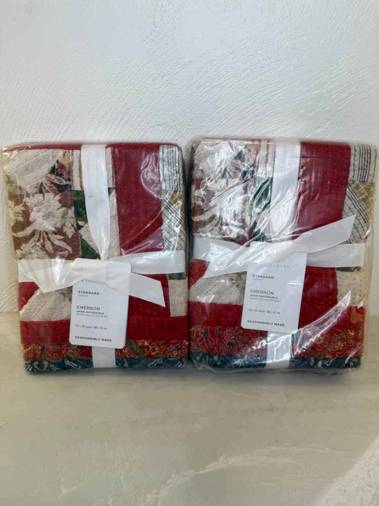 These Pottery Barn pillow shams are absolutely stunning—the hand-stitched quilting gives them such a luxurious, cozy feel. The patchwork design adds a charming cottage vibe, and the 100% cotton is soft yet durable. They wash beautifully and fit standard pillows perfectly, making them both stylish and practical. A gorgeous addition to any bedroom!