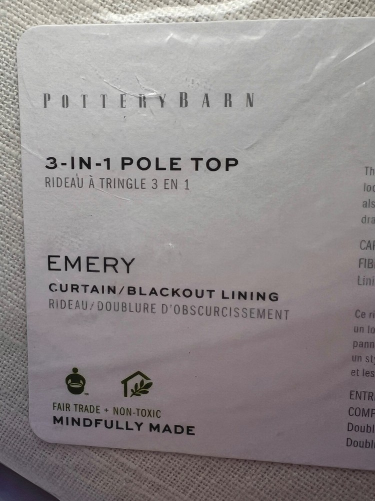 This beautiful curtain retails for $179 - making this a GREAT deal! SMOKE AND PET FREE HOME! USPS Priority shipping CONSTRUCTION Made of a 73% linen and 27% cotton blend; with flax fibers imported from France. Made in a Fair Trade Certified™ factory, supporting fair and safe labor practices and empowering workers to invest in their communities. Workers receive extra funds for every product sold which are used for community projects chosen by workers. Detailed with blind-stitched hems. Our curtain’s 3-in-1 construction offers three hanging options: rod pocket, back tabs, ring top. Imported.