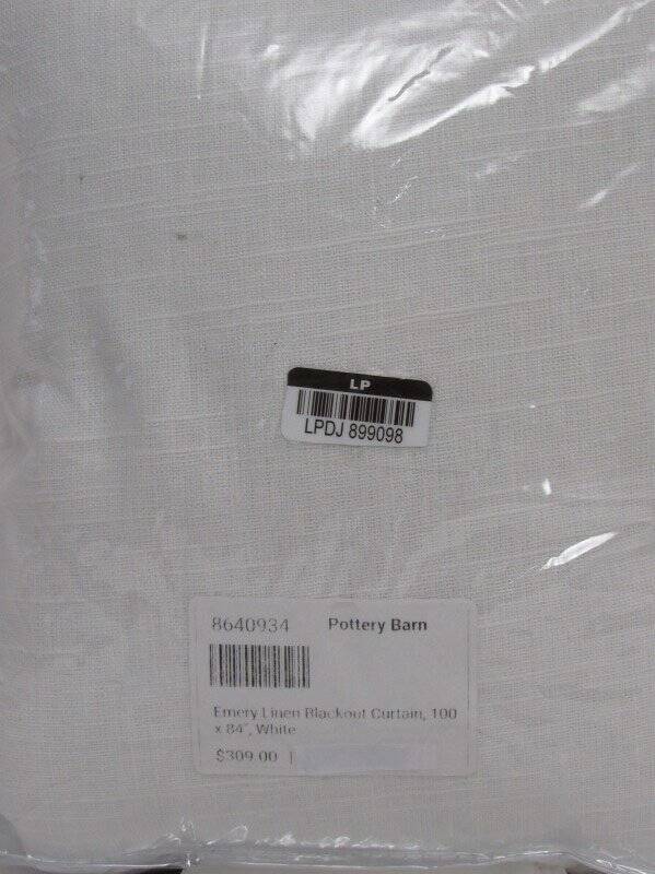 Pottery Barn Emery Linen Blackout Curtain, 100" x 84' White Color New Trying to match a curtain you already have? Please check the MPN #8640934 to be sure colors match. MPN numbers are on the Pottery barn, West elm or Crate & Barrel sale tag or the sewn in garment label located on the inside bottom of curtain. Pottery Barn Emery Linen Blackout Curtain, 100" x 96' White Color NWT Open box---- "New without cardboard hang tags, has Pottery Barn sticker tag. ( See pictures )" 1 Panel----100" wide x 84" long----254 x 213 cm SIDE HEM: 1" w BOTTOM HEM: 4" h ROD POCKET: 3" h LOOP (9): 0.5" w x 3.25" h Color--White Curtain hooks included Made to elevate any room, Emery is woven from a blend of linen and cotton. This tailored, midweight curtain has a slight heathered look that's subtly textured and perfectly relaxed. Plus, it's lined for maximum light filtering. PRODUCT DETAILS CONSTRUCTION Made of a 73% linen and 27% cotton blend with metallic finish. Blackout liner: Crafted from 100% polyester, it prevents most light from entering windows to help darken the room. Detailed with blind-stitched hems. Our curtain’s 3-in-1 construction offers three hanging options: rod pocket, back tabs, ring top. Curtain length includes height of rod pocket. 100" wide panels have a visible vertical seam down the middle of each panel. Imported. CARE Dry-clean only. INSTALLATION Curtain hooks included; Round Rings and Clip Rings sold separately. Use with 9 Clip or Round Rings for 50" wide panel, 16 Clip or Round Rings for 100" wide panel. See my other listings for more great items! Please read our return policy before you purchase: We take pride in our business, and we strive to do our best. We purchase brand new items and we do our best to give accurate descriptions and photos. If you have any questions about an item, please contact us through eBay prior to your purchase. We try our best to resolve any issues as fast as possible. Please contact us right away if there are any issues with your purchase. Item must be returned within 30 days of the original delivery date. When we receive the returned item, inspect it, and it is found to be in the same condition that we shipped it in (brand new, unused and in the original packaging) You will immediately receive your refund. Returns that have any signs of use or handling will NOT be accepted and no refund will be given. Thank you! Please read our return policy before you purchase: We take pride in our business, and we strive to do our best. We purchase brand new items and we do our best to give accurate descriptions and photos. If you have any questions about an item, please contact us through eBay prior to your purchase. We try our best to resolve any issues as fast as possible. Please contact us right away if there are any issues with your purchase. Item must be returned within 30 days of the original delivery date. When we receive the returned item, inspect it, and it is found to be in the same condition that we shipped it in (brand new, unused and in the original packaging) You will immediately receive your refund. Returns that have any signs of use or handling will NOT be accepted and no refund will be given. Thank you! Feedback: We strive to give you the best service. If you have any issues regarding your item, please contact us right away . Customer satisfaction is our priority. We accept MasterCard, Visa, Discover, Paypal and American Express, securely and conveniently via eBay Managed Payments. We will use the address listed on your eBay account...so please make sure it is correct. WE WILL SHIP TO CONFIRMED EBAY ADDRESSES ONLY!! DO NOT send money via PayPal if your address is not confirmed...we will not be able to accept it. We provide fast shipping! Your item will be shipped within 1-3 business days via UPS, USPS priority mail or Fed-Ex. We reserve the right to choose shipping company. They can NOT deliver to PO boxes, so please provide us with a physical street address. Once your item is shipped you will receive an email with your tracking number. We are HAPPY to combine shipping on items that can be combined. Please email us for shipping rates to HI and AK. Signature at delivery is required for all items over $250. All items must also be shipped to the address on your eBay account.. We are enrolled in eBay's Global Shipping Program . Only countries approved in eBay's Global shipping can receive deliveries from us. Other Items Feedback Contact txzj pxzj432 txzj-11 txzj-4 txzj1 txzj115