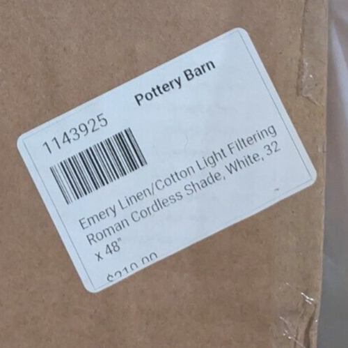 Pottery Barn Emery linen cordless roman shade Light filtering (not blackout) 32" w x 48" l White Includes mounting hardware Item number: 1143925...