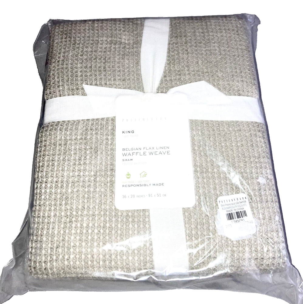 Pottery Barn European Linen cotton KING pillow sham (Measures 36 x 20”) color : Pottery Barn “Eucalyptus”, which is now Pottery Barn “Bamboo” New in packaging • Made from 100% European Flax linen. Reverses to 100% cotton. Polyester fill. • Sham features an envelope closure. • OEKO-TEX® STANDARD 100 certified, tested for 1000+ harmful substances (14.HUS.42449 HOHENSTEIN HTTI). Made in a Fair Trade Certified™ factory, empowering workers who made it.