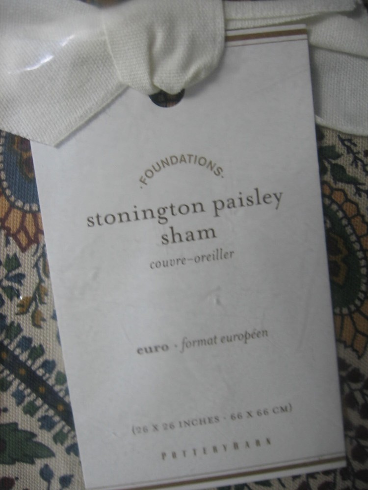 Beautiful Euro pillow sham from Pottery Barn. Stonington Paisley Made in India Size - Euro (26" x 26") New in the package Comes from a smoke-free home Thank you for supporting my small business!