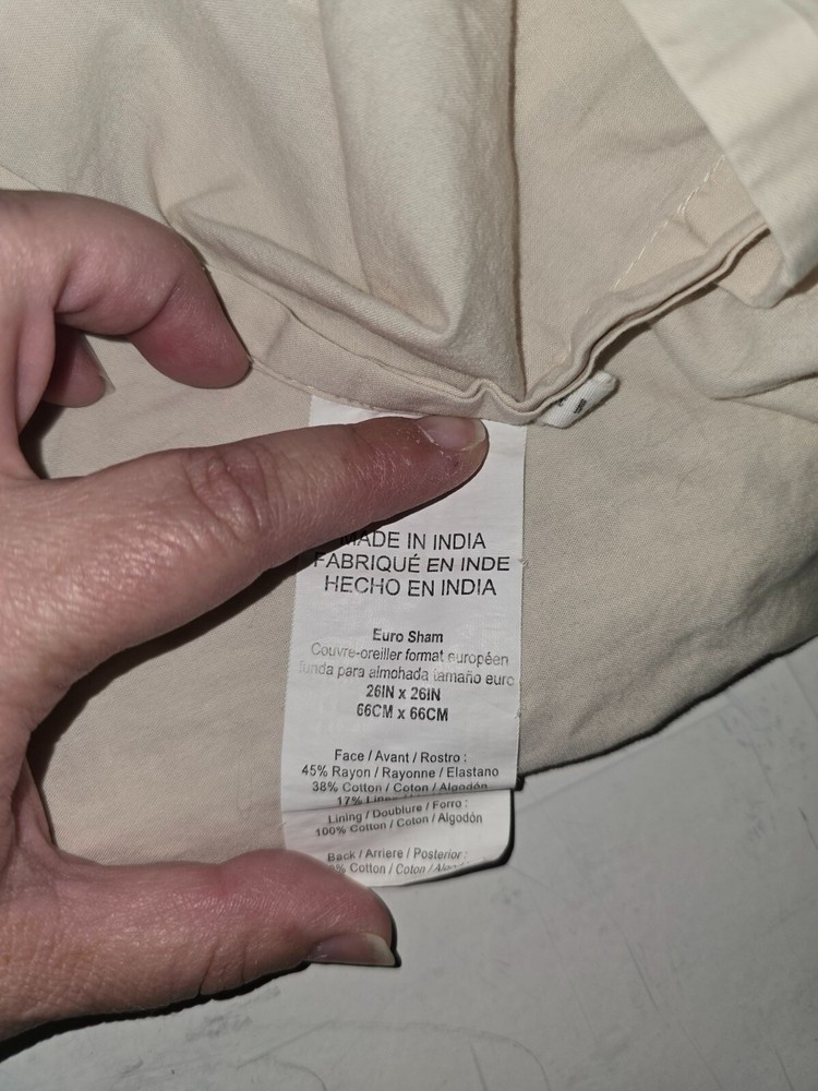 This elegant Pottery Barn Euro sham features a beige damask pattern, offering a sophisticated touch to any bedding ensemble. Made with a blend of rayon and polyester, it provides both durability and a soft feel. Measuring 26" x 26", it is an ideal size for standard Euro pillows. • Euro sham size 26" x 26" • Beige damask pattern • 45% rayon, 38% cotton, 17% linen • Made in India • Suitable for Euro pillows Size: Unisex 26x26 Condition: Pre-Owned Good Great-preowned condition. No rips or stains.