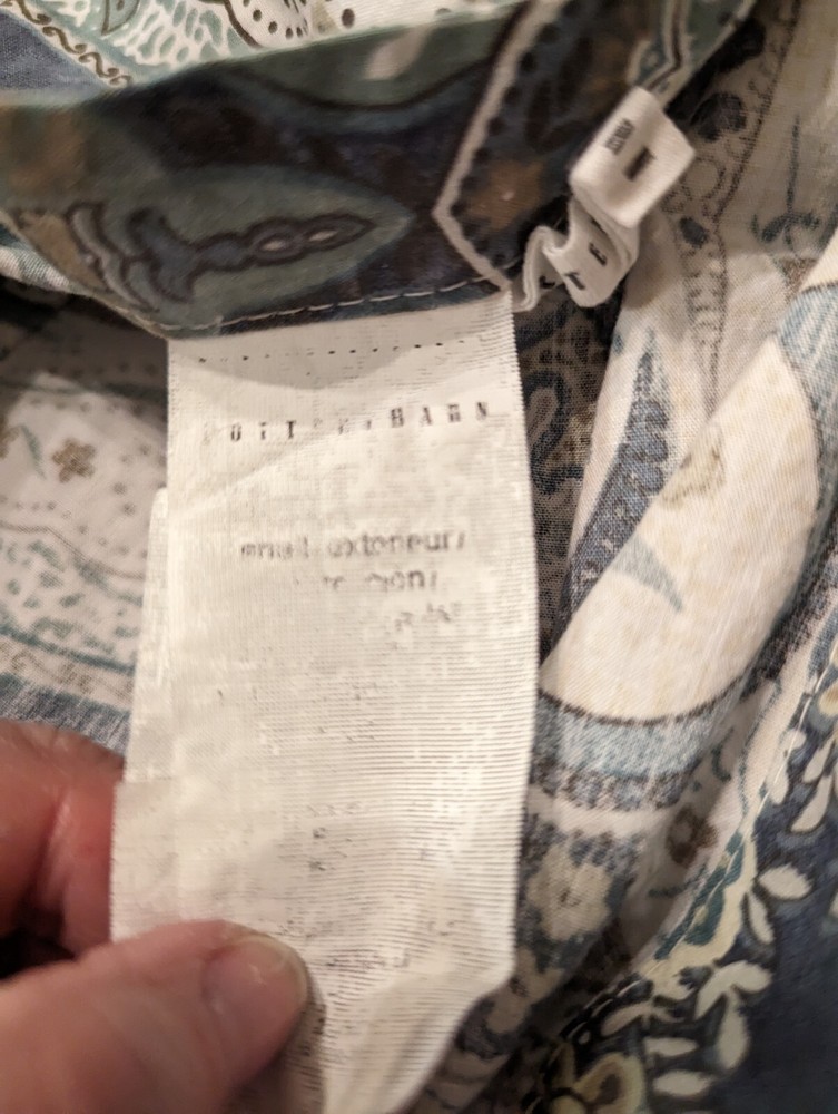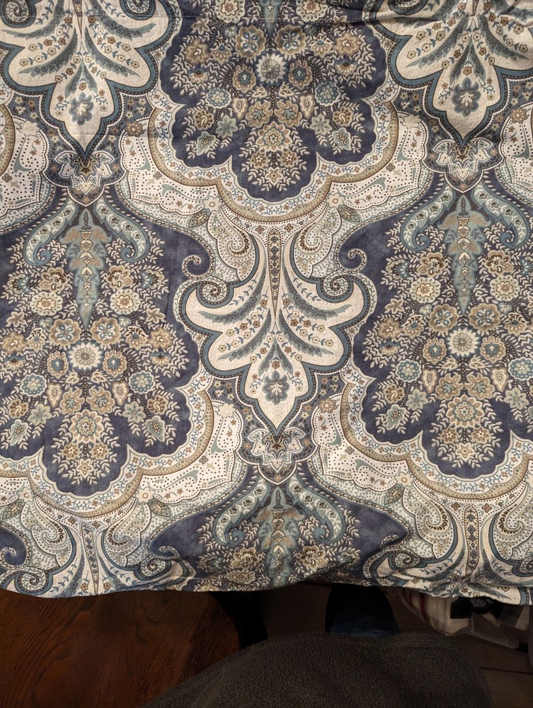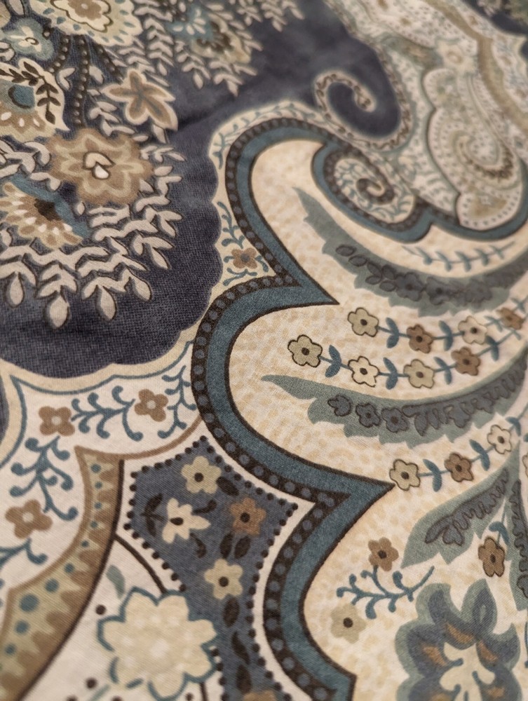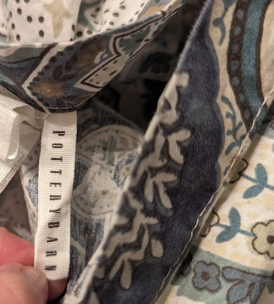 Beautiful euro sham from Pottery Barn with shades of blues, greens, tan, and white. Fold over closure. I was surprised to see the state of the tag because this piece doesn't look as worn as the tag! Measures 26 x 26. Please see the photos and ask any questions before bidding. Thanks for looking!
