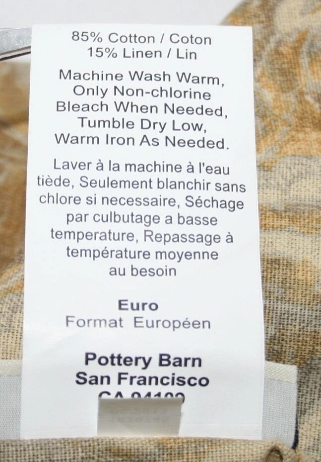 Elevate your bedroom decor with this Pottery Barn Euro Sham. Featuring a sophisticated yellow and brown floral medallion pattern, it adds timeless charm. • Made in India with 85% cotton, 15% linen • Machine washable for easy care • Euro sham size design for luxurious bedding • Warm, earthy tones for a cozy aesthetic Measurements: 26 x 26 inches, (inner seam), 29 x 29 (outside measurements) Condition: Refer to photos for complete condition. No discoloration. Minimal visible wear - no pulls or pilling. No holes, tears, rips or stains. All stitching is intact, no loose or dangling threads.