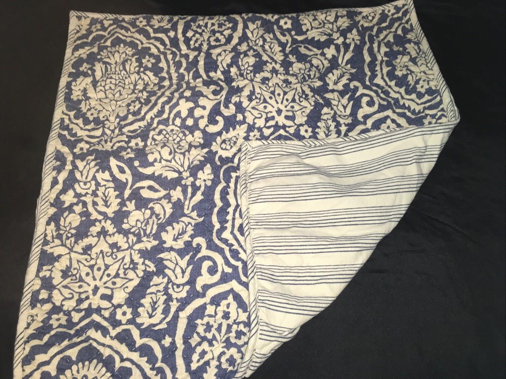 Add a touch of French country elegance to your bedroom with this Pottery Barn Euro Sham Linen Blend Blue Beige Floral Medallion Stripe Tie Close. The square pillow sham features a beautiful floral pattern and is made of 100% cotton fill material, making it easy to care for and comfortable to use. The quilted design adds a touch of luxury, while the tie closure allows for easy installation and customization. Perfect for adults who love nature and flowers, this pillow sham is a must-have for any bedroom.