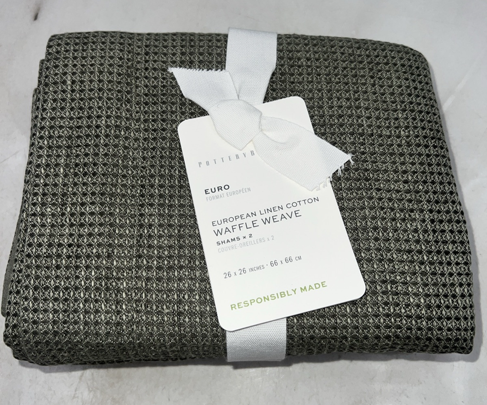 Pottery Barn Euro Sham Linen Cotton Waffle Weave 26x26" Square Green Set of 2...