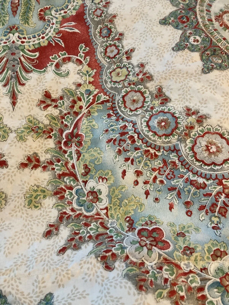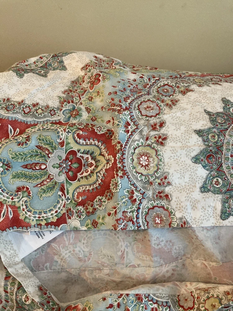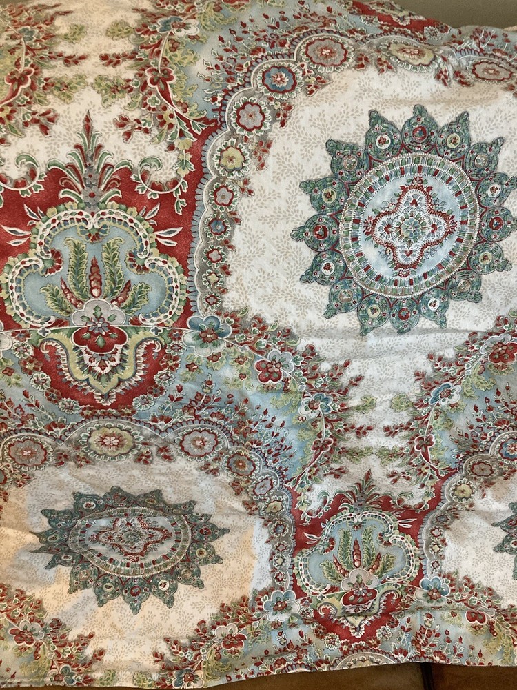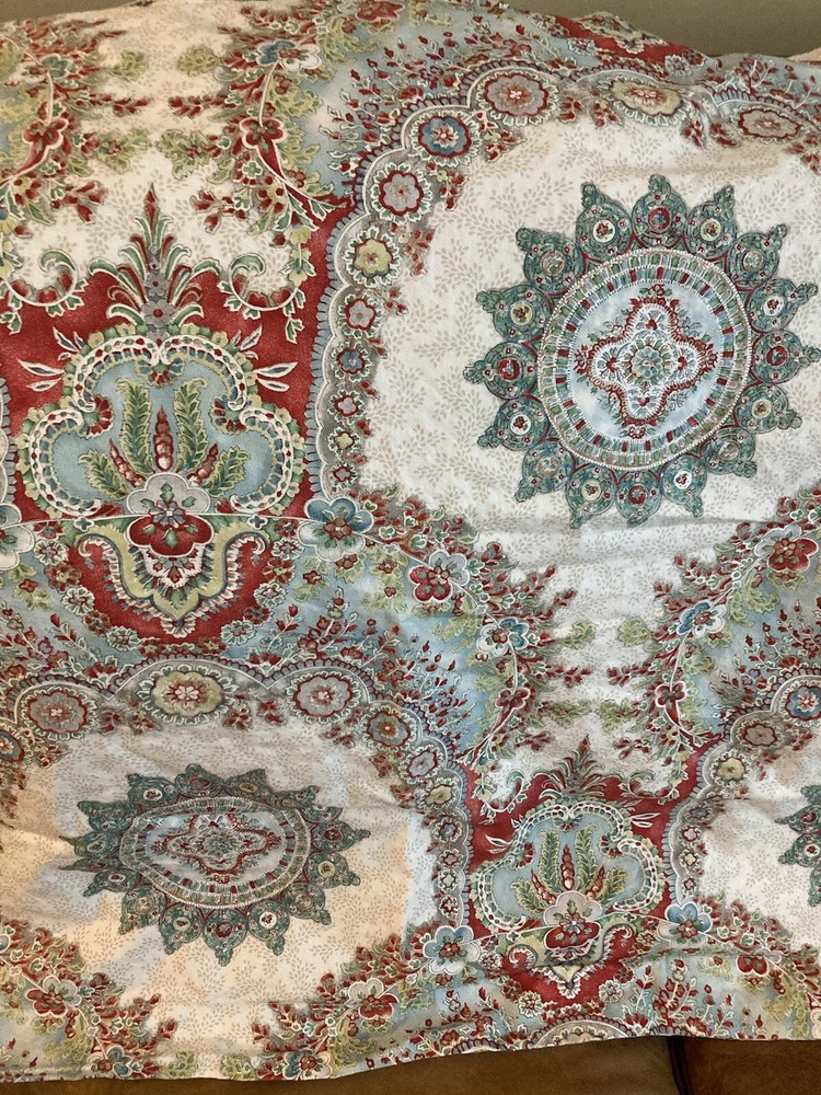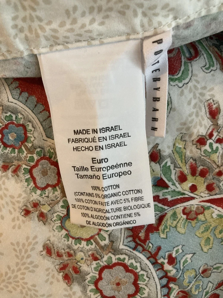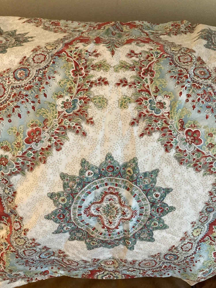 Add a touch of traditional elegance to your bedroom with this Pottery Barn Euro Sham. The ivory fabric is adorned with a beautiful paisley pattern in shades of blue, making it a perfect addition to any decor scheme. Measuring 28 inches in length and 30 inches in width, this pillow sham is designed to fit a Euro size pillow. Crafted from 100% cotton, this sham is both soft and durable. It is machine washable and not quilted, ensuring easy care and long-lasting use. Ideal for bedrooms, this Pottery Barn Euro Sham is sure to add a touch of sophistication to your home.