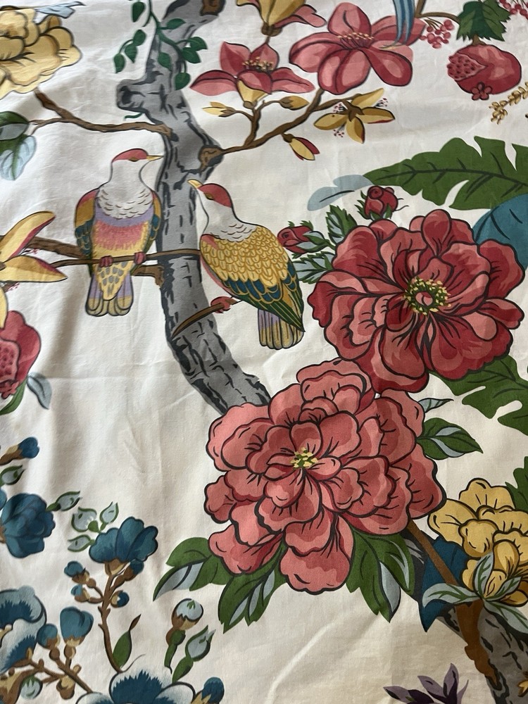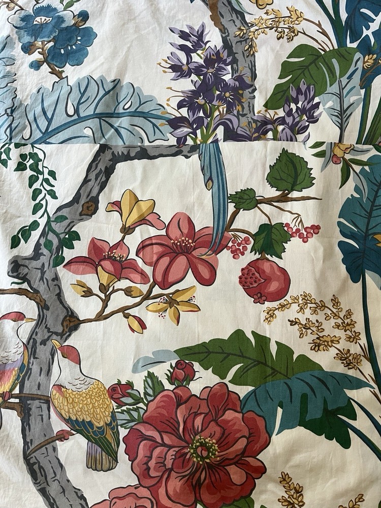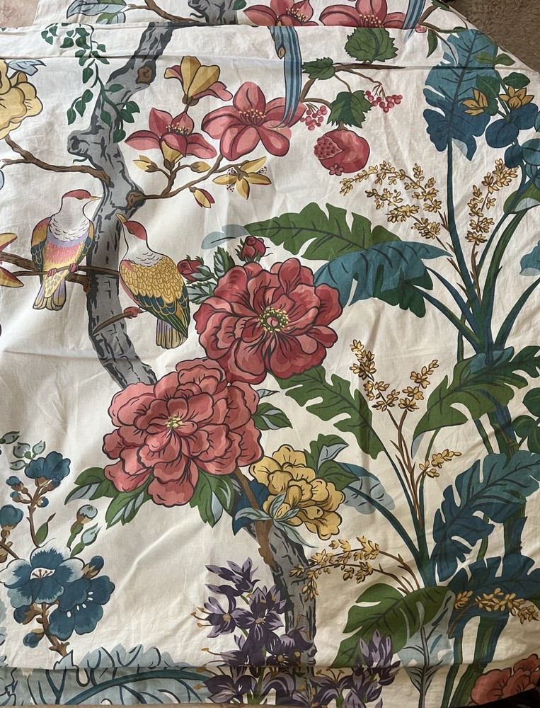 Gorgeous print! Two very large euro shams in retired print. Birds, flowers, pomegranates! These shams have an oriental/tropical feel. EUC