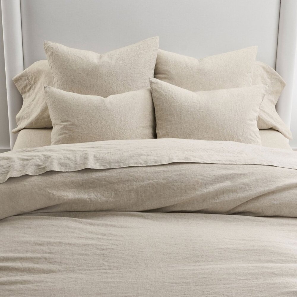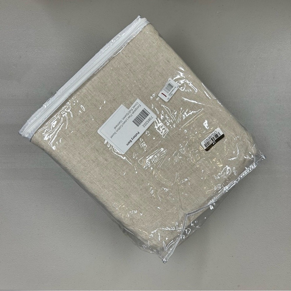 <![CDATA[<div>Pottery Barn European Flax Linen Cotton Duvet Cover Oatmeal Tan NEW (inspected and repackaged by Pottery Barn) Full Queen 88" w x 92" l Construction Made with 55% linen and 45% cotton. Reverses to the same. Duvet features a hidden button closure with inner ties that keep insert in place; sham features an envelope closure. Shams and insert sold separately. Care Machine wash on warm. Only use non-chlorine bleach when needed. Tumble dry on low. Warm iron as needed. Comes from a clean and smoke free home!