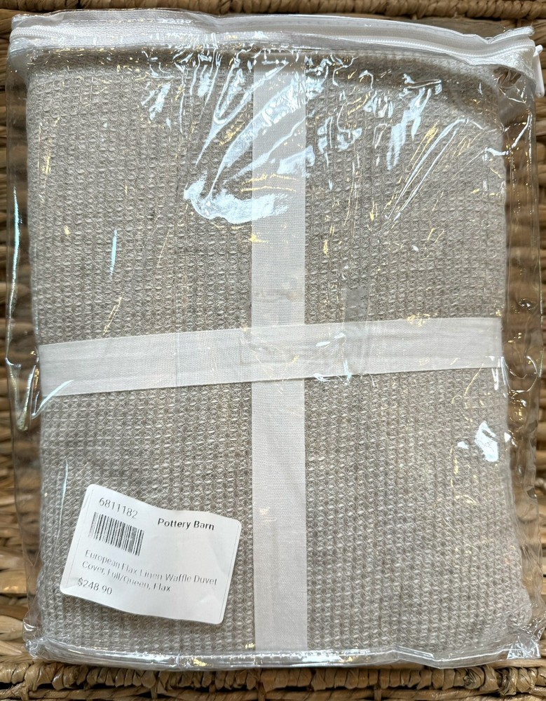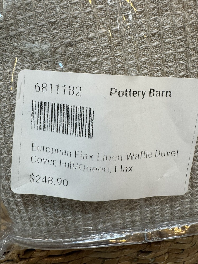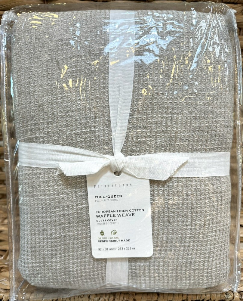 Open Box Pottery Barn~European Flax Linen Waffle Duvet Cover~FULL/ QUEEN ~ Flax, 100 % linen. 92” x 88” Fast shipping! It is our commitment to ship same day, or next day depending upon the time of day of the order. Satisfaction is guaranteed! Stored in a smoke free and pet free environment. Fragrance free. Please note that photos are a part of the description and the best indication of the condition of an item. If you have ANY questions please ask them PRIOR to purchasing the item. Satisfaction is my goal. So, please give me an opportunity to address any concerns. I’m always here to help! Customer service is a high priority for me. Thank you for visiting my store! Thank you for visiting my store!