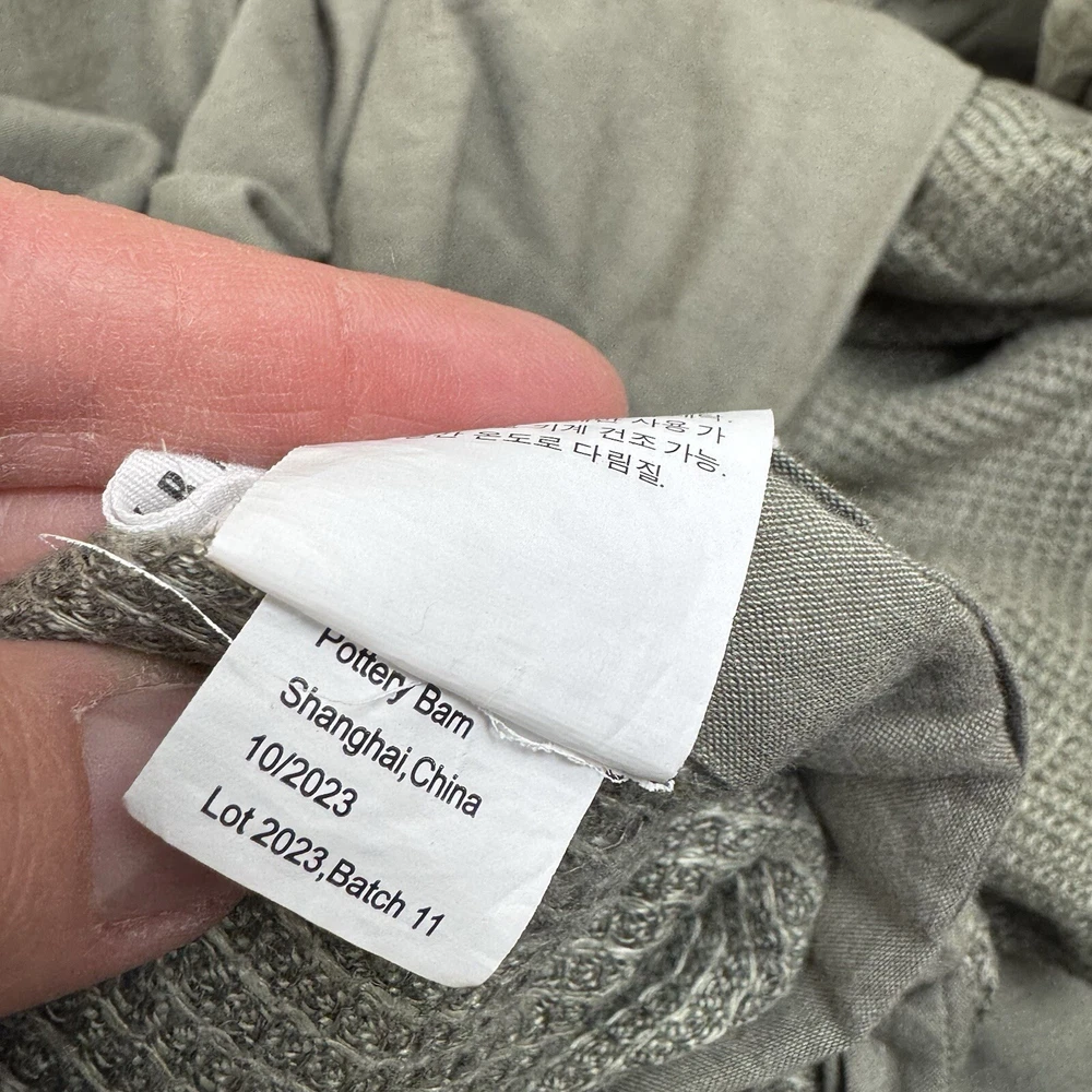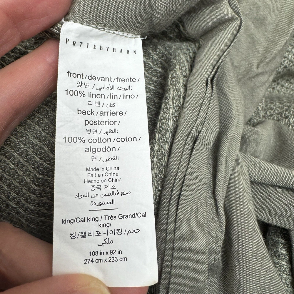 Pottery Barn European Flax Linen Waffle Duvet Cover King/Cal. King Loden Read Gently used duvet / has been washed - please note, internal tags have some wrinkling throughout from handling Second part of internal tag has been cut There are a few pulls throughout from handling / very minor Item ships without manufacturer packaging Dimensions: 108”x92”