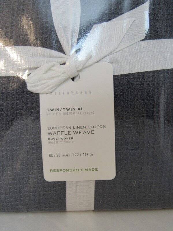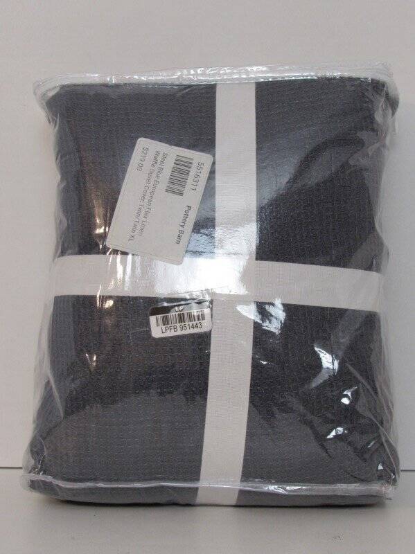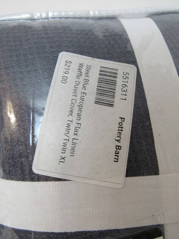 Pottery Barn European Flax Linen Waffle Duvet Cover, Twin/TwinXL Steel Blue NWT Pottery Barn European Flax Linen Waffle Duvet Cover, New with tags.... 1 Twin/TwinXL----68" wide x 86" long----172 cm x 218 cm Color--Steel Blue Product Details Material: Front is woven from 100% European Flax Linen; reverse is 100% cotton. Temperature Comfort: Breathable European flax linen is ideal for warm or cool temperatures and its durability lets you love it for years. Texture: Designed with a waffle texture. Feel: Soft and cool to the touch Natural Variation: Color variations are inherent to natural fibers and slight variations may occur to what is shown online. Secure Design: Duvet features a hidden button closure with inner ties that keep the insert in place. Certification and Standards: OEKO-TEX® STANDARD 100 certified, tested for 1000+ harmful substances (14.HUS.42449 HOHENSTEIN HTTI). Made in a Fair Trade Certified™ factory. Place of Manufacture: Imported. Care Instructions Linen will get softer with every wash. Machine wash in cold water separately on gentle cycle. Use only non-chlorine bleach, if needed. Line or tumble dry on a low temperature. See my other listings for more great items! Please read our return policy before you purchase: We take pride in our business, and we strive to do our best. We purchase brand new items and we do our best to give accurate descriptions and photos. If you have any questions about an item, please contact us through eBay prior to your purchase. We try our best to resolve any issues as fast as possible. Please contact us right away if there are any issues with your purchase. Item must be returned within 30 days of the original delivery date. When we receive the returned item, inspect it, and it is found to be in the same condition that we shipped it in (brand new, unused and in the original packaging) You will immediately receive your refund. Returns that have any signs of use or handling will NOT be accepted and no refund will be given. Thank you! Please read our return policy before you purchase: We take pride in our business, and we strive to do our best. We purchase brand new items and we do our best to give accurate descriptions and photos. If you have any questions about an item, please contact us through eBay prior to your purchase. We try our best to resolve any issues as fast as possible. Please contact us right away if there are any issues with your purchase. Item must be returned within 30 days of the original delivery date. When we receive the returned item, inspect it, and it is found to be in the same condition that we shipped it in (brand new, unused and in the original packaging) You will immediately receive your refund. Returns that have any signs of use or handling will NOT be accepted and no refund will be given. Thank you! Feedback: We strive to give you the best service. If you have any issues regarding your item, please contact us right away . Customer satisfaction is our priority. We accept MasterCard, Visa, Discover, Paypal and American Express, securely and conveniently via eBay Managed Payments. We will use the address listed on your eBay account...so please make sure it is correct. WE WILL SHIP TO CONFIRMED EBAY ADDRESSES ONLY!! DO NOT send money via PayPal if your address is not confirmed...we will not be able to accept it. We provide fast shipping! Your item will be shipped within 1-3 business days via UPS, USPS priority mail or Fed-Ex. We reserve the right to choose shipping company. They can NOT deliver to PO boxes, so please provide us with a physical street address. Once your item is shipped you will receive an email with your tracking number. We are HAPPY to combine shipping on items that can be combined. Please email us for shipping rates to HI and AK. Signature at delivery is required for all items over $250. All items must also be shipped to the address on your eBay account.. We are enrolled in eBay's Global Shipping Program . Only countries approved in eBay's Global shipping can receive deliveries from us. Other Items Feedback Contact txzj pxzj432 txzj-11 txzj-4 txzj1 txzj115