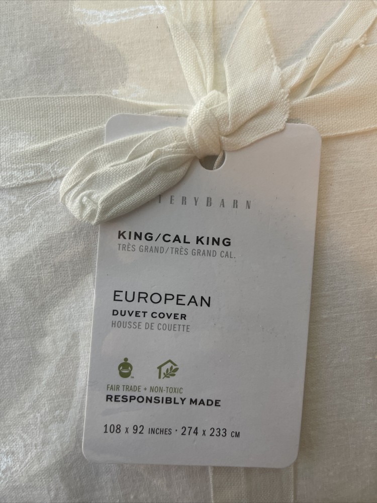 PB says, " We’ve taken the luxurious look and natural breathability of linen and combined it with the soft hand of cotton. With its relaxed drape, inviting texture, and effortless style, it has everything you need for a well-made bed. Neutral, easy-to-layer hues add versatility for print and pattern pairings." Made with 55% linen and 45% cotton. Reverses to same. Condition: New with tags Size: King / California King Color: White 12.99 shipping to the U.S. Thank you for your interest!