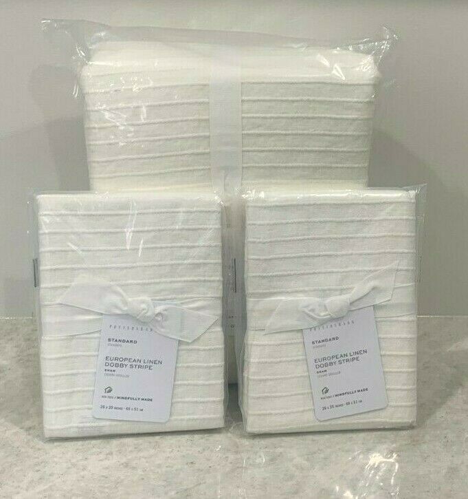 This is a new Pottery Barn European Striped Dobby Linen KING duvet and 2 standard shams in WHITE! Brand new with tags! GORGEOUS! PB describes as, " Woven on a dobby loom for subtle texture that's at once casual and chic, our European Linen Striped Dobby Duvet and Shams are prewashed for a soft hand and beautiful drape. The front is woven from a linen/cotton blend and reverses to 100% cotton. A variety of solid neutral hues makes it simple to layer the bed with a mix of patterns and colors. Front is dobby woven from 90% linen and 10% cotton. Reverses to 100% cotton. Prewashed for a super soft hand feel. STANDARD 100 by OEKO-TEX® Certified: tested for 350+ harmful substances to keep you and your family safe from chemicals common to textile manufacturing. Duvet features a hidden button closure with interior ties that keep insert in place; sham features an envelope closure. Machine wash." It is stored in my smoke/pet free home. Please feel free to contact me with any questions you might have. My feedback is very important to me. Please contact me before negative feedback is left, I pride myself in being an easy person to work with. Thanks :) I am in no way associated with Williams-Sonoma Inc.