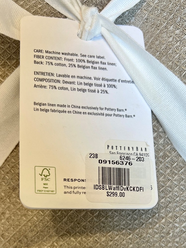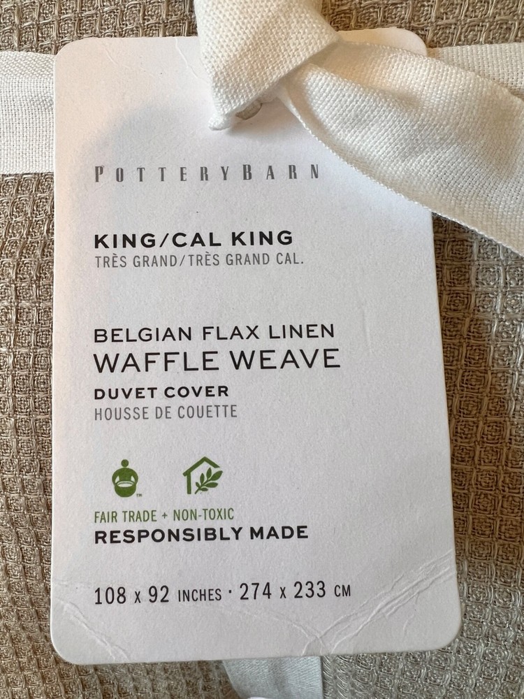 This beautiful Duvet Cover retails for $299 - making this a GREAT DEAL! SMOKE AND PET FREE HOME! Ships USPS Priority. Construction Front is woven from 100% European Flax Linen; reverse is 100% cotton. Breathable European flax linen is ideal for warm or cool temperatures and its durability lets you love it for years. Designed with a waffle texture. Soft and cool to the touch. Color variations are inherent to natural fibers and slight variations may occur to what is shown online for our Flax color option. Duvet features a hidden button closure with inner ties that keep the insert in place; sham features an envelope closure. Duvet cover and insert sold separately. Shams sold in Set of 2 or Set of 3. Made in a Fair Trade Certified™ factory, empowering workers who made it. OEKO-TEX® STANDARD 100: tested against 1000+ harmful substances. 14.HUS.42449 HOHENSTEIN. Imported. Care Linen will get softer with every wash. Machine wash in cold water separately on gentle cycle. Use only non-chlorine bleach, if needed. Line or tumble dry on a low temperature.