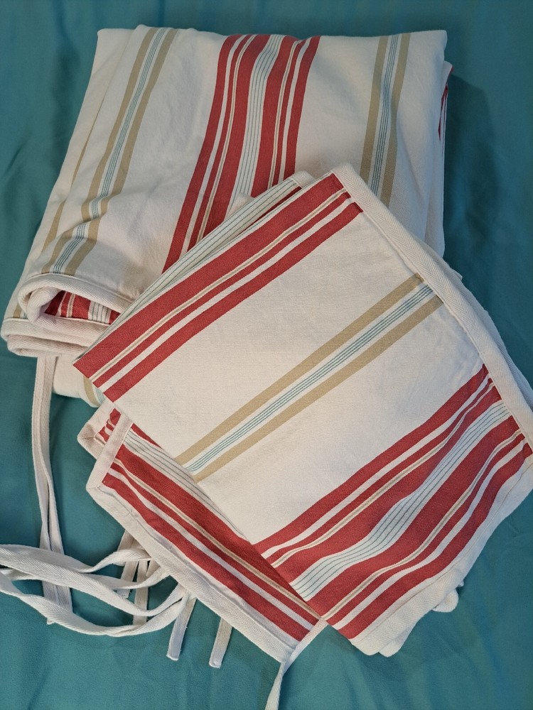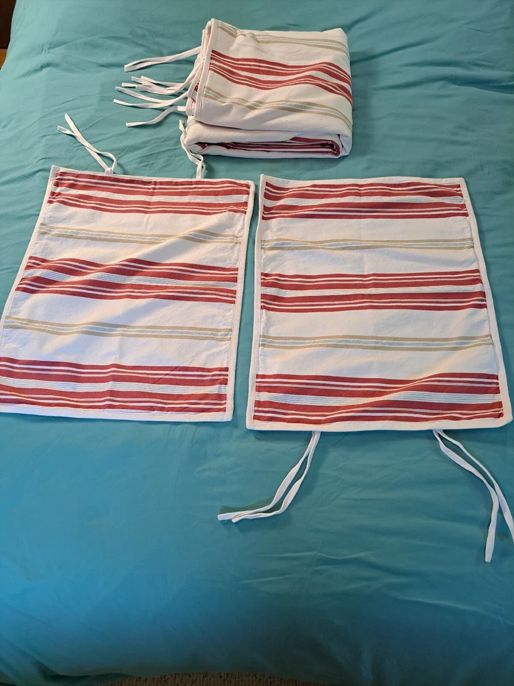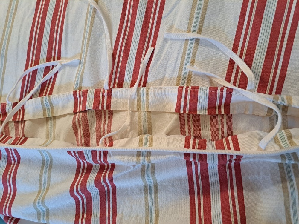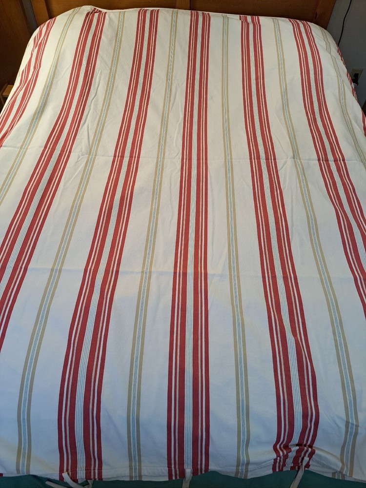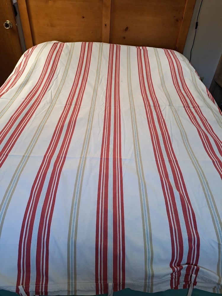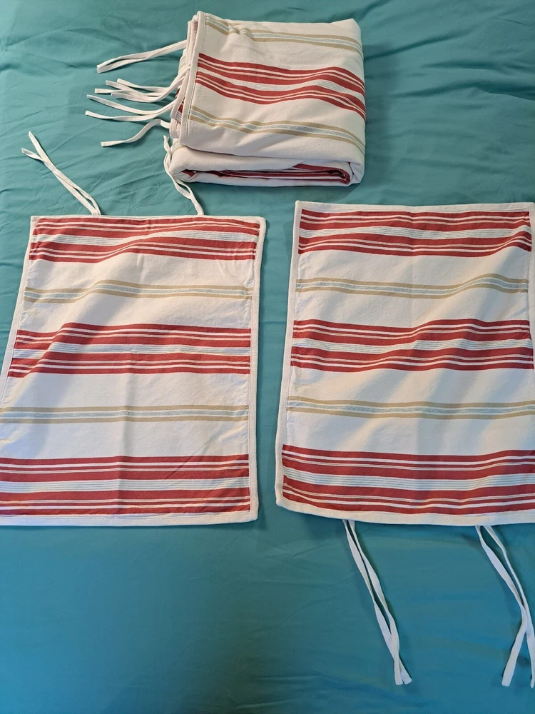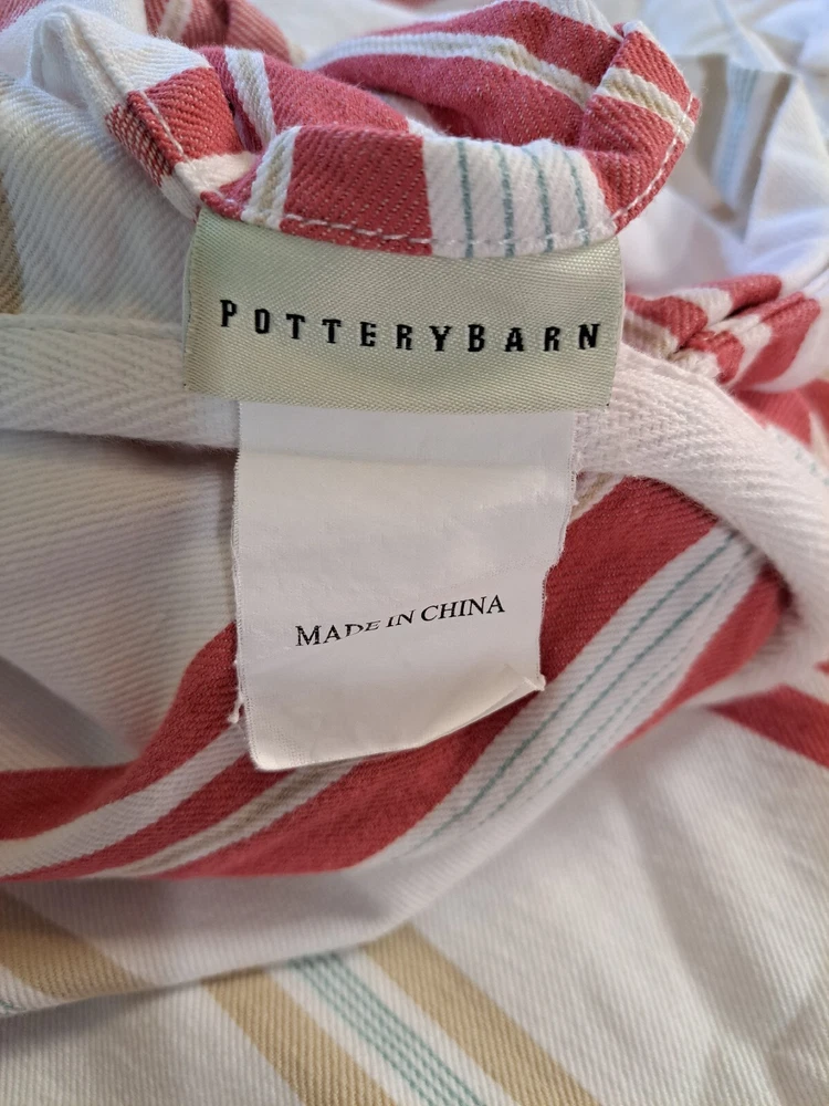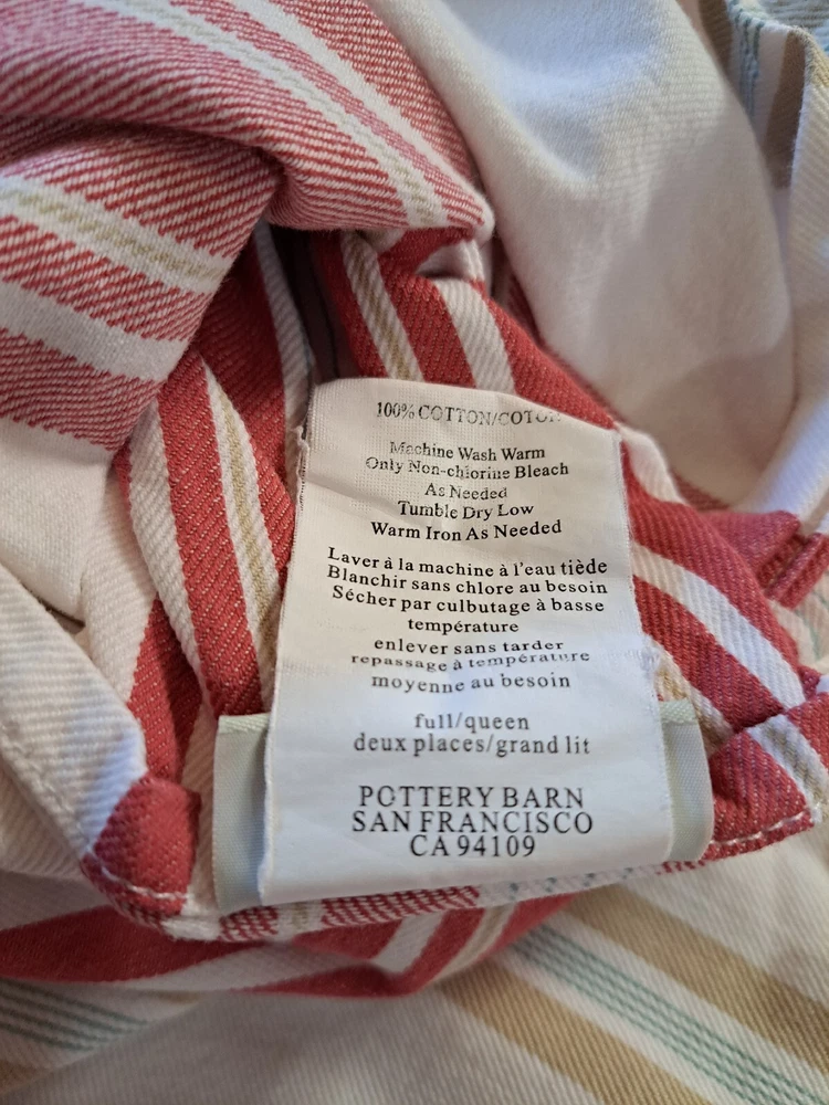 Pottery Barn F/Q Duvet Cover Set Multi-Color Striped Heavy Cotton Tie Closure Red Cream 3pc. This set is pre-owned and sold as is Gently used, very clean No rips, holes, or discolorations Very well-made duvet cover set from heavy cotton material No rips, holes, or discolorations The set comes with 1 duvet cover and 2 standard pillow shams Measurements are approximate(see photos) Duvet cover: 88" x 82" Pillow sham: 25" × 19" The overall condition is very good PLEASE SEE PHOTOS FOR DETAILS/REFERENCE Computer monitor and lighting,etc.can show colors differently I DO NOT ACCEPT RETURNS Please take time to view all of the photos and read all descriptions before buying SHIPS TO U.S. ADDRESSES ONLY THANK YOU FOR LOOKING and FOR YOUR INTEREST!